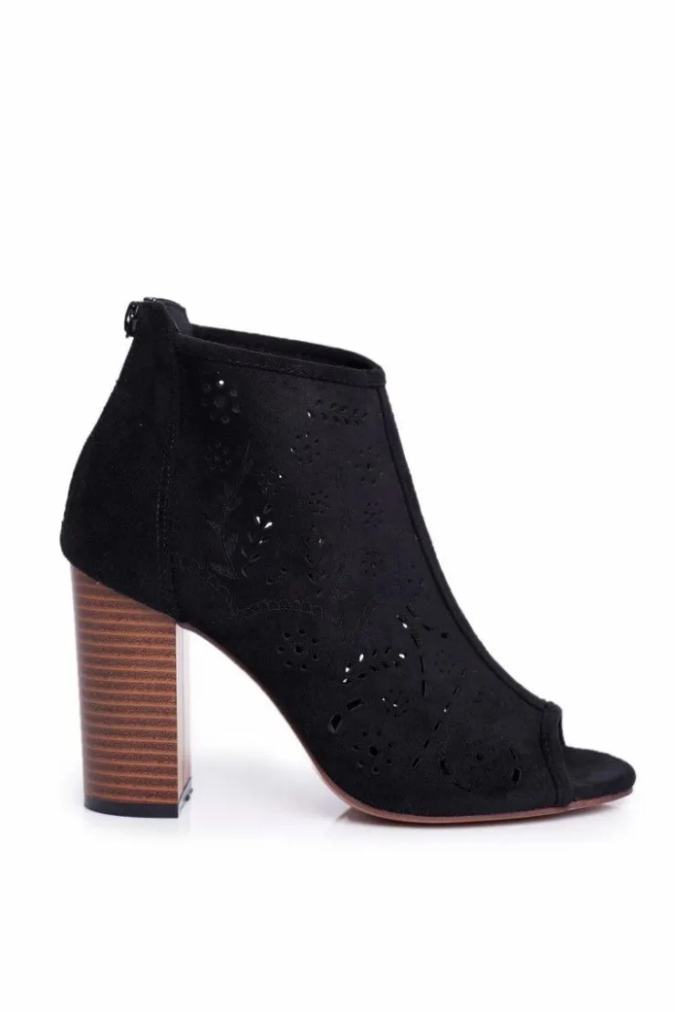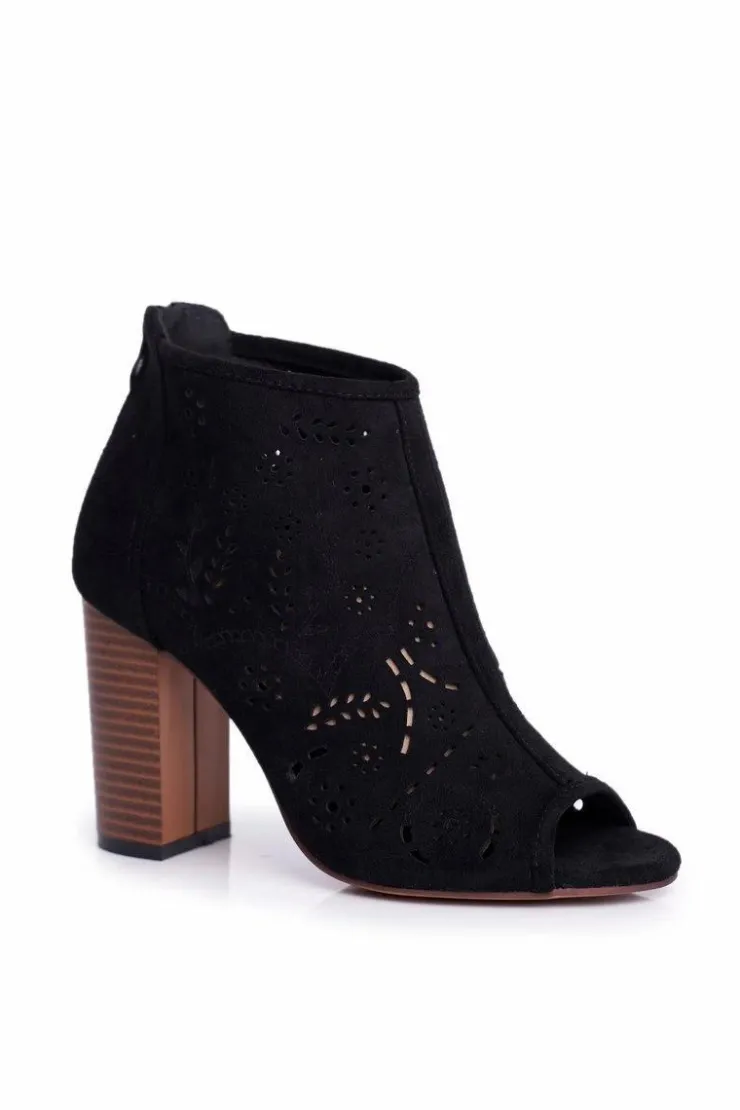 Boto Botki Wiosenne|Botki Na Słupku*Botki Damskie Na Słupku Zamszowe Ażurowe Czarne Papillon