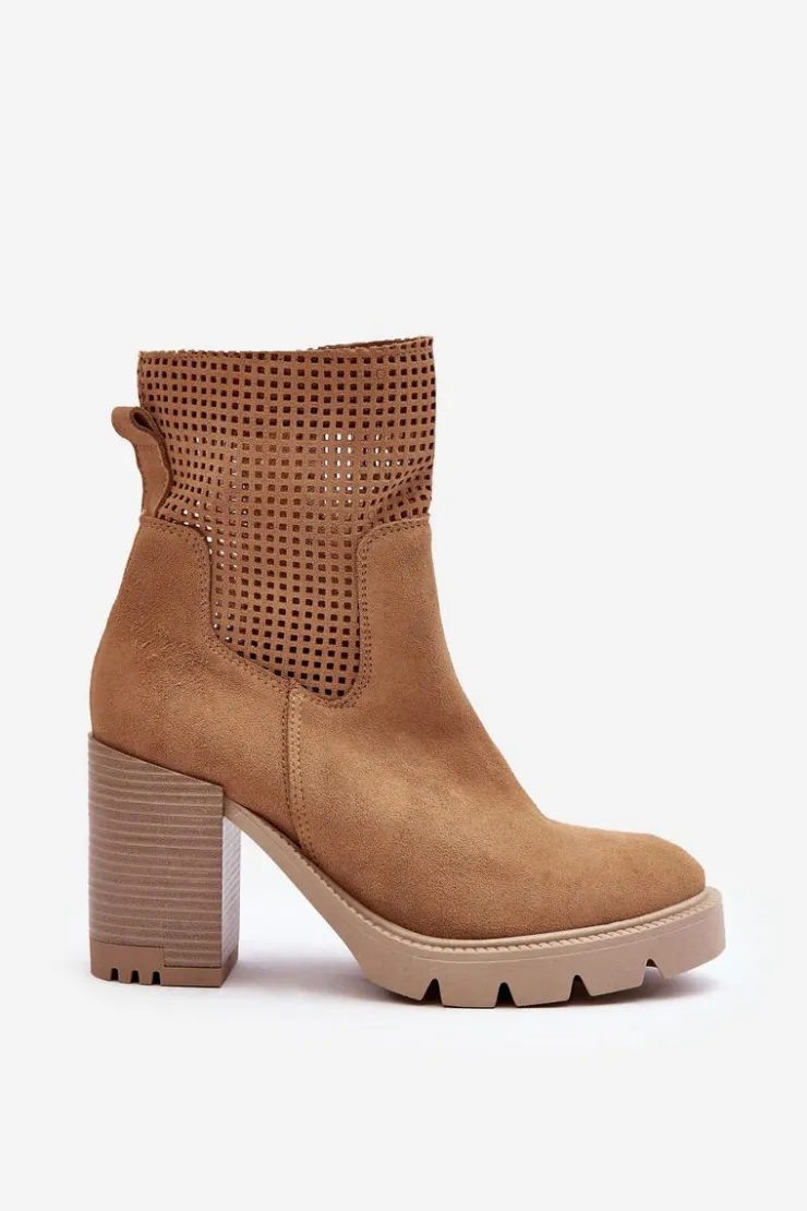 Modne, ażurowe botki na obcasie w postaci słupka zostały wykonane z wysokiej jakości skóry naturalnej. Zapinane na suwak z boku cholewki. Miękka, niezwykle wygodna wkładka została wykonana również z naturalnej skóry. Świetny model do wielu stylizacji! Przy wyborze rozmiaru prosimy sugerować się tabelą rozmiarów.