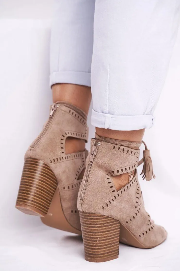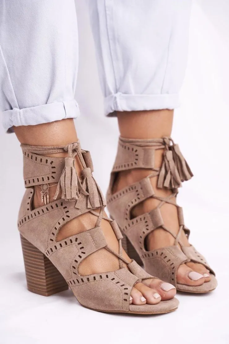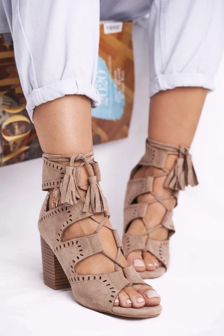 Boto Botki Wiosenne|Botki Sznurowane*Botki Damskie Na Słupku Zamszowe Odkryte Beżowe Empty