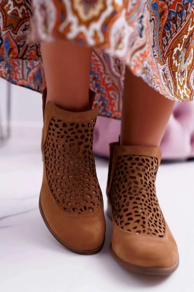 Boto Botki Wiosenne|Brązowe I Beżowe Botki*Botki Damskie Wiosenne Kowbojki Camel 2366 Draw