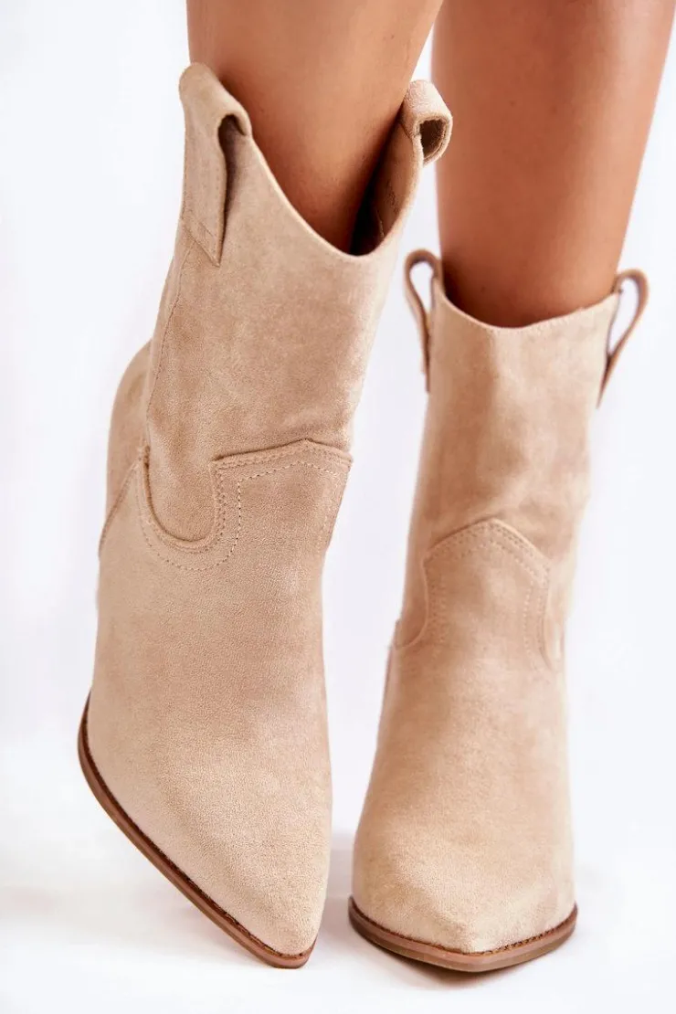 Botki o fasonie kowbojek posiadają u góry dwie pętelki, które mają ułatwić zakładanie obuwia. Zapinane na zamek błyskawiczny. Dodatkowo posiadają usztywniany zapiętek. Wykonane z eko zamszu z delikatnymi przeszyciami. Botki typu kowbojki będą świetnym uzupełnieniem wielu stylizacji. Możesz nosić je w wielu stylizacjach m.in.: do szmizjerek, zwiewnych spódnic czy spodni jeansowych. Przy wyborze rozmiaru prosimy sugerować się tabelą rozmiarów.