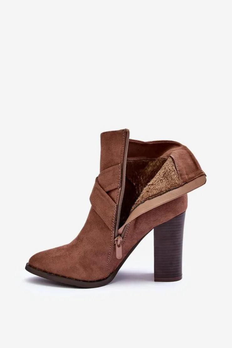 Boto Botki Zamszowe Na Słupku Z Klamrą Brązowe Eftane