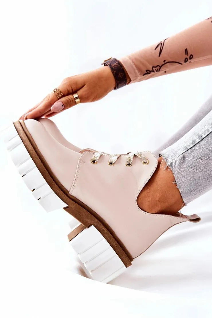 Botki na masywnej platformie to HIT tego sezonu. Wykonane w całości z naturalnej skóry. Posiadają efektowne wycięcia na boku cholewki. Wiązanie sprawia, że buty można dopasować do własnych wymagań. Ten model sprawi, że każda stylizacja będzie naprawdę wyjątkowa! Przy wyborze rozmiaru prosimy sugerować się tabelą rozmiarów.