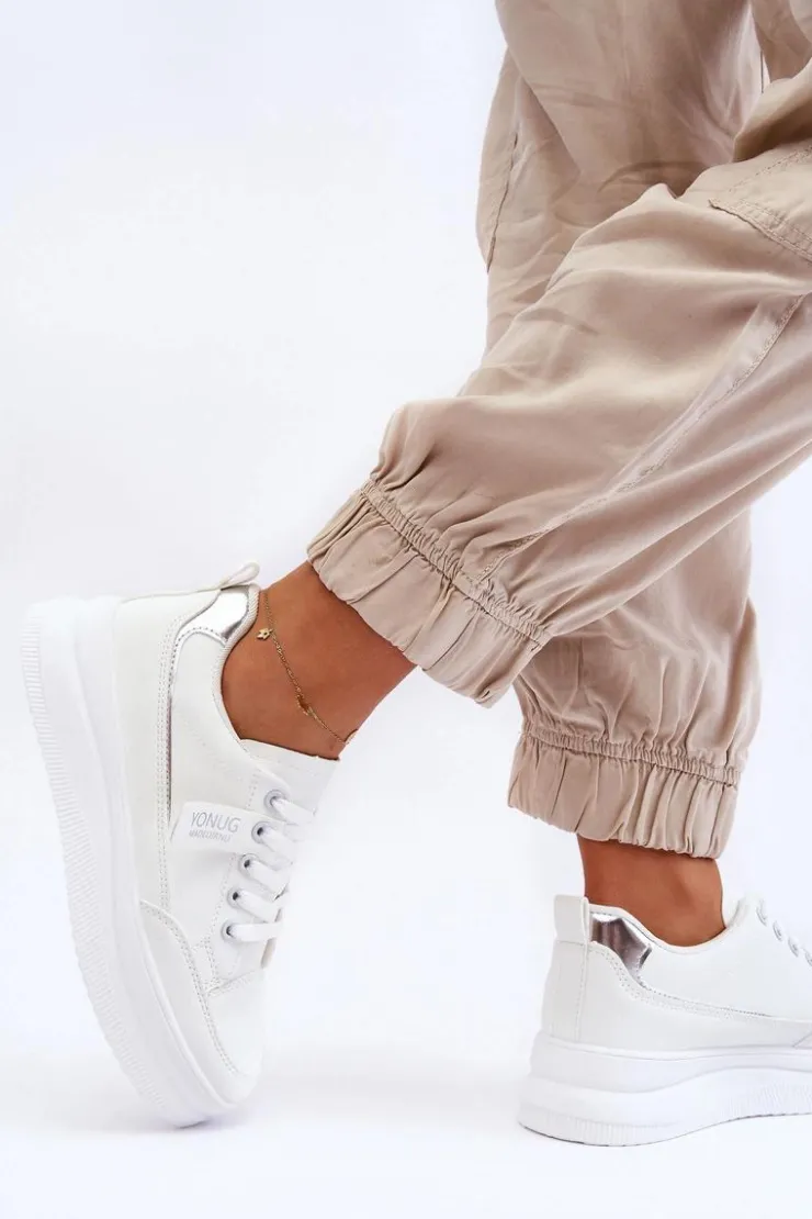 Te buty z pewnością sprawdzą się podczas codziennych aktywności! Zostały wykonane z eko skóry. Posiadają delikatnie usztywniany zapiętek. Sneakersy na platformie posiadają podeszwę wykonaną z tworzywa sztucznego. Model ten jest klasycznie sznurowany. Przy wyborze rozmiaru prosimy kierować się tabelą rozmiarów.