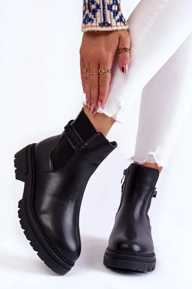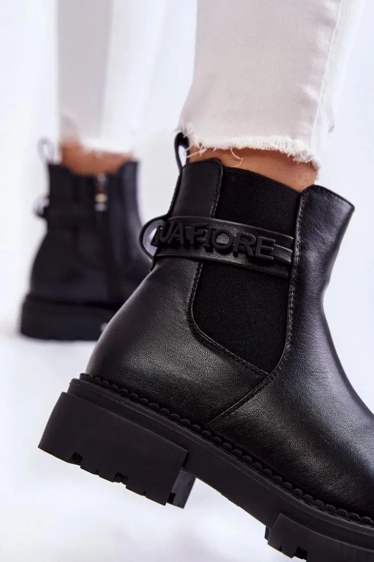Boto Czarne Botki|Botki Zimowe Damskie*Damskie Botki La.Fi 250005B-PU Czarne