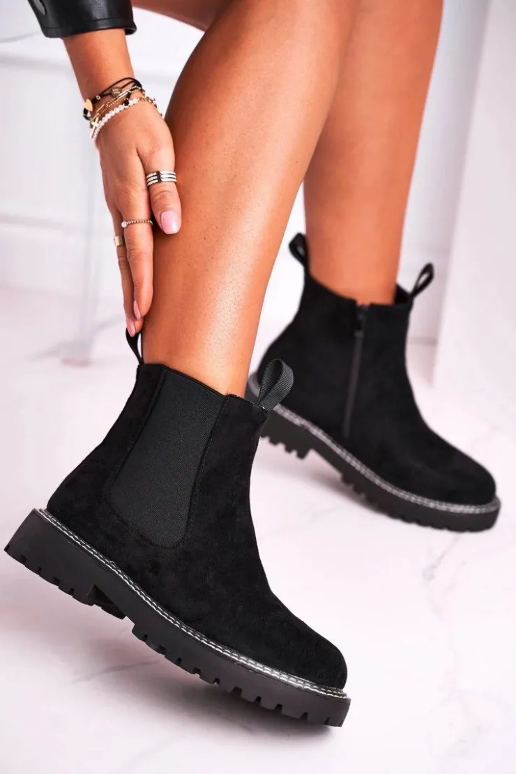 Boto Czarne Botki|Botki Zimowe Damskie*Damskie Botki Sztyblety Czarne Resist