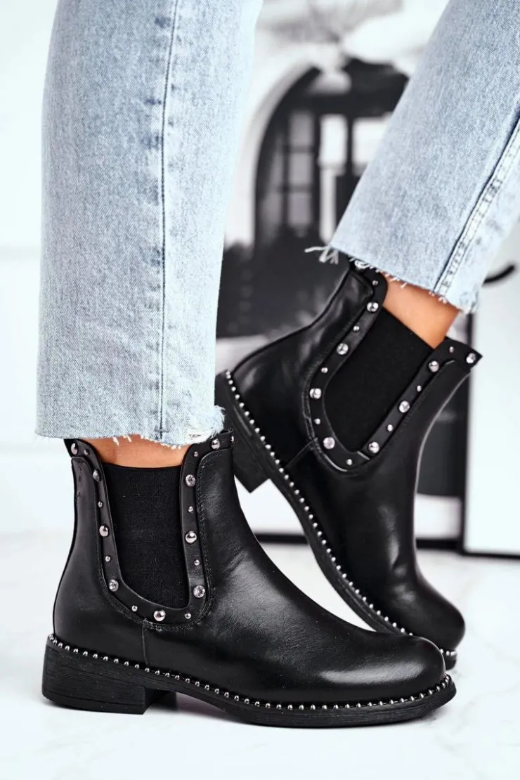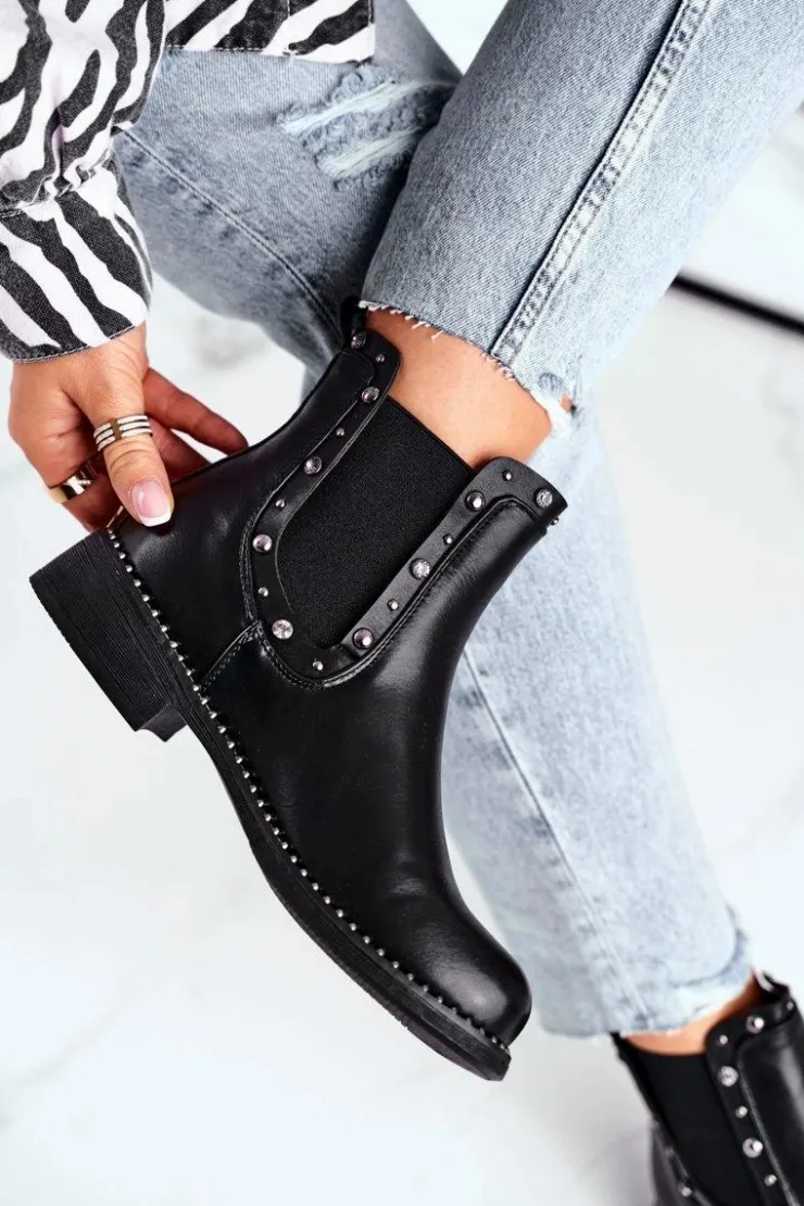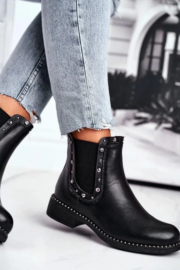 Boto Czarne Botki|Botki Zimowe Damskie*Damskie Botki Sztyblety Czarne Visible
