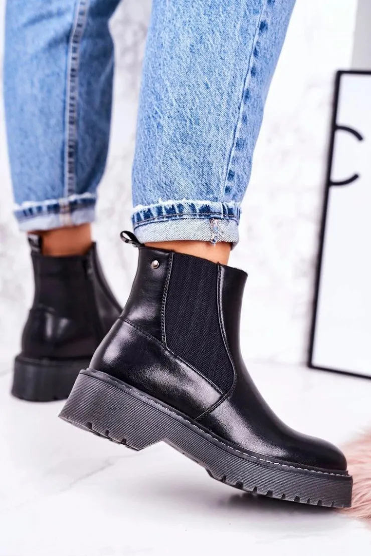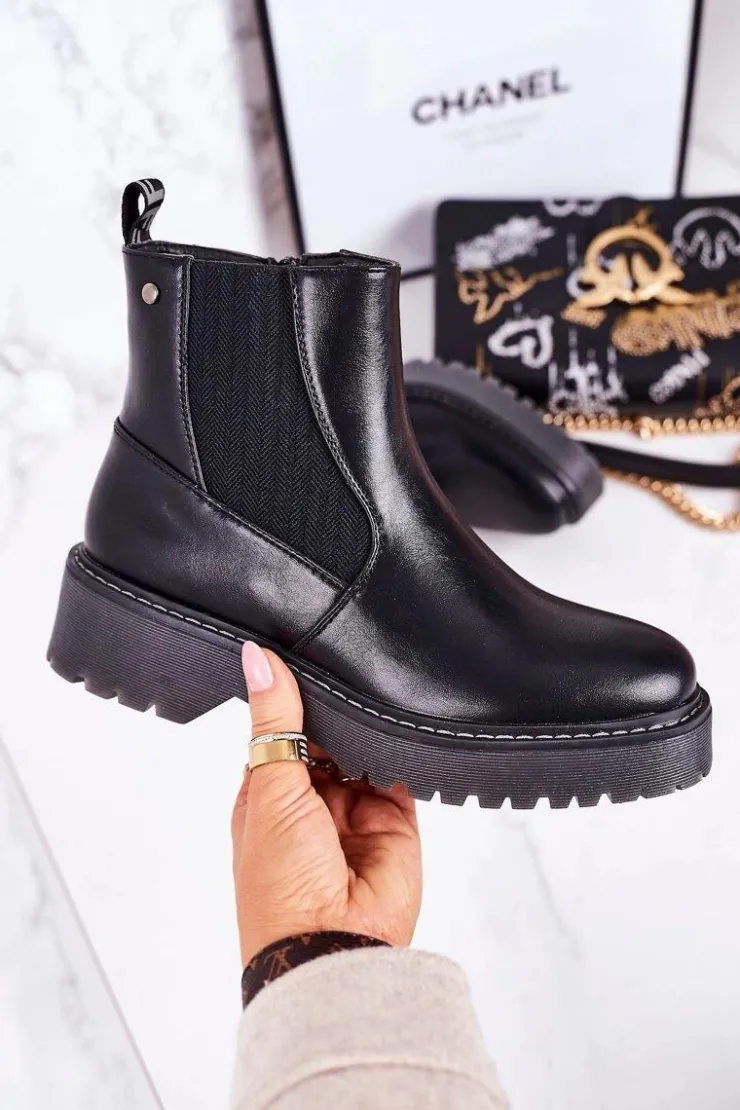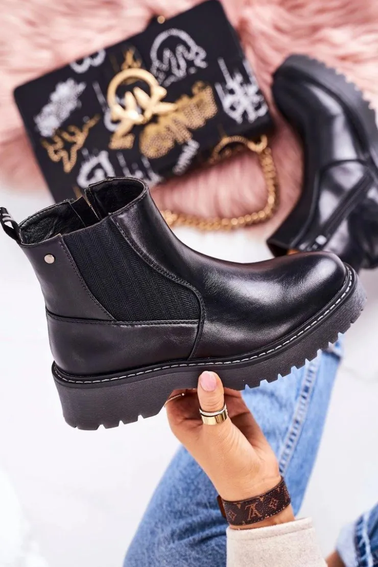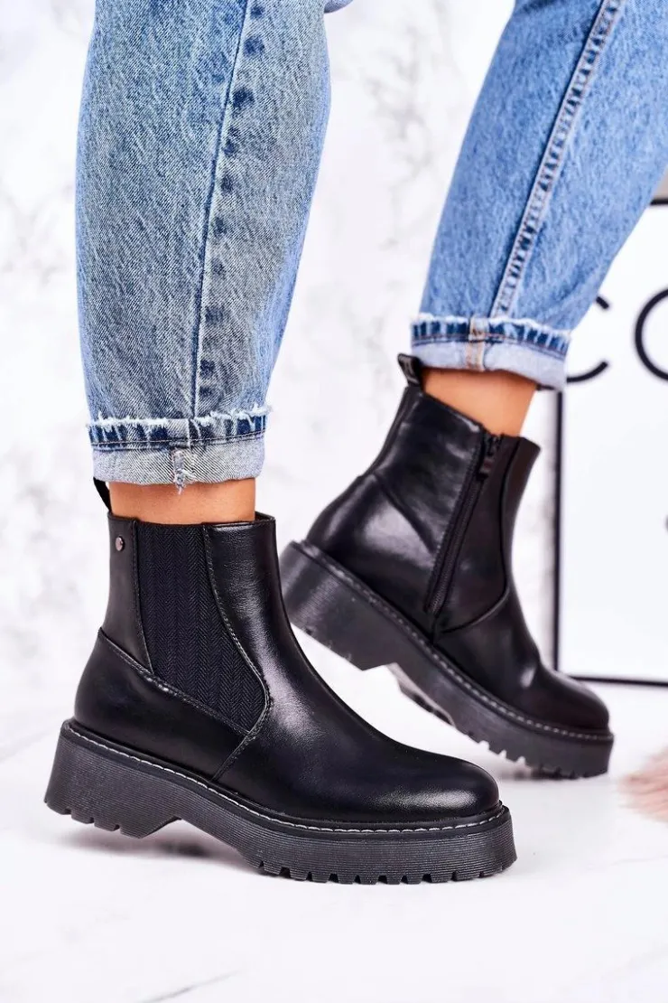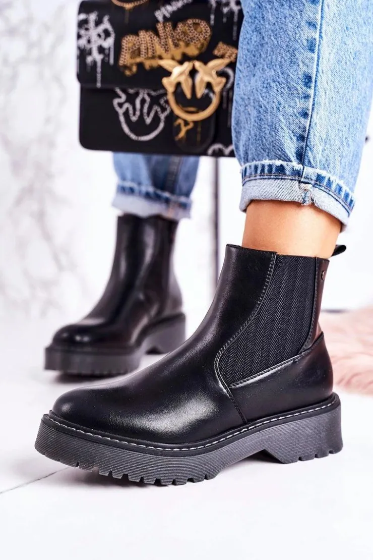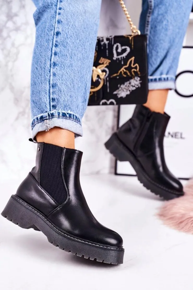 Boto Czarne Botki|Botki Zimowe Damskie*Damskie Botki Sztyblety Na Gumowej Podeszwie Czarne Voyager