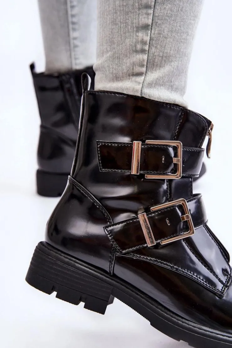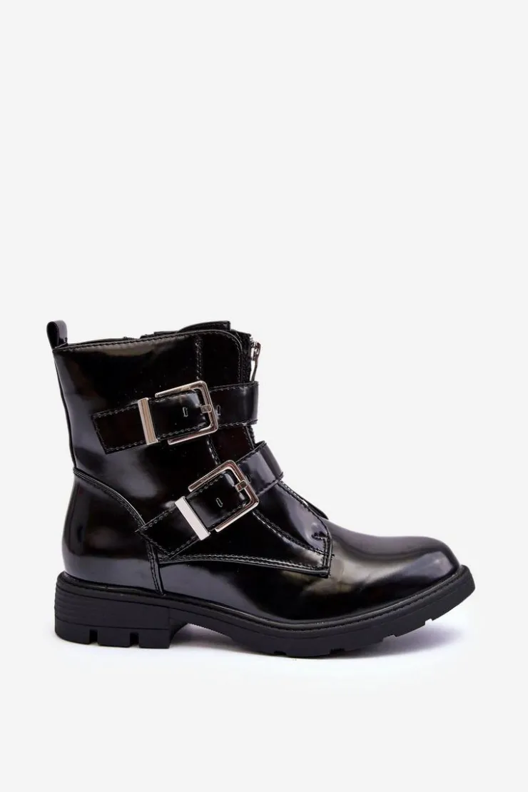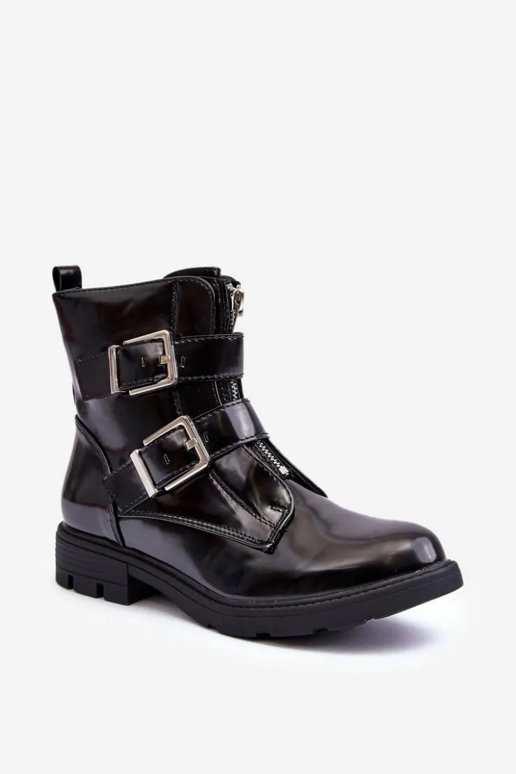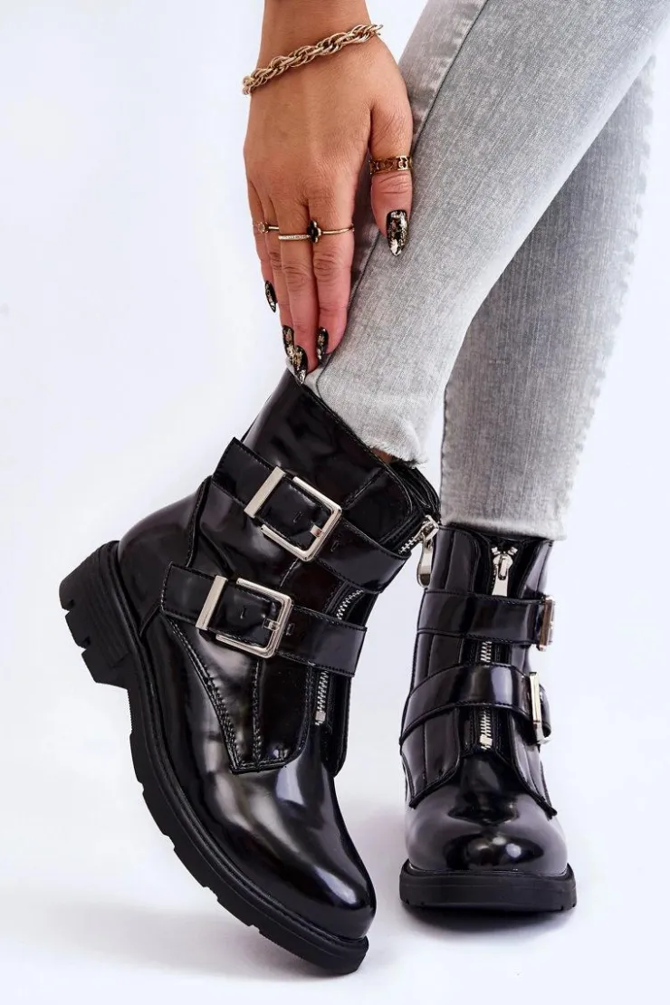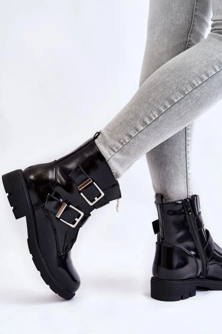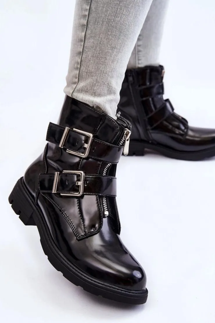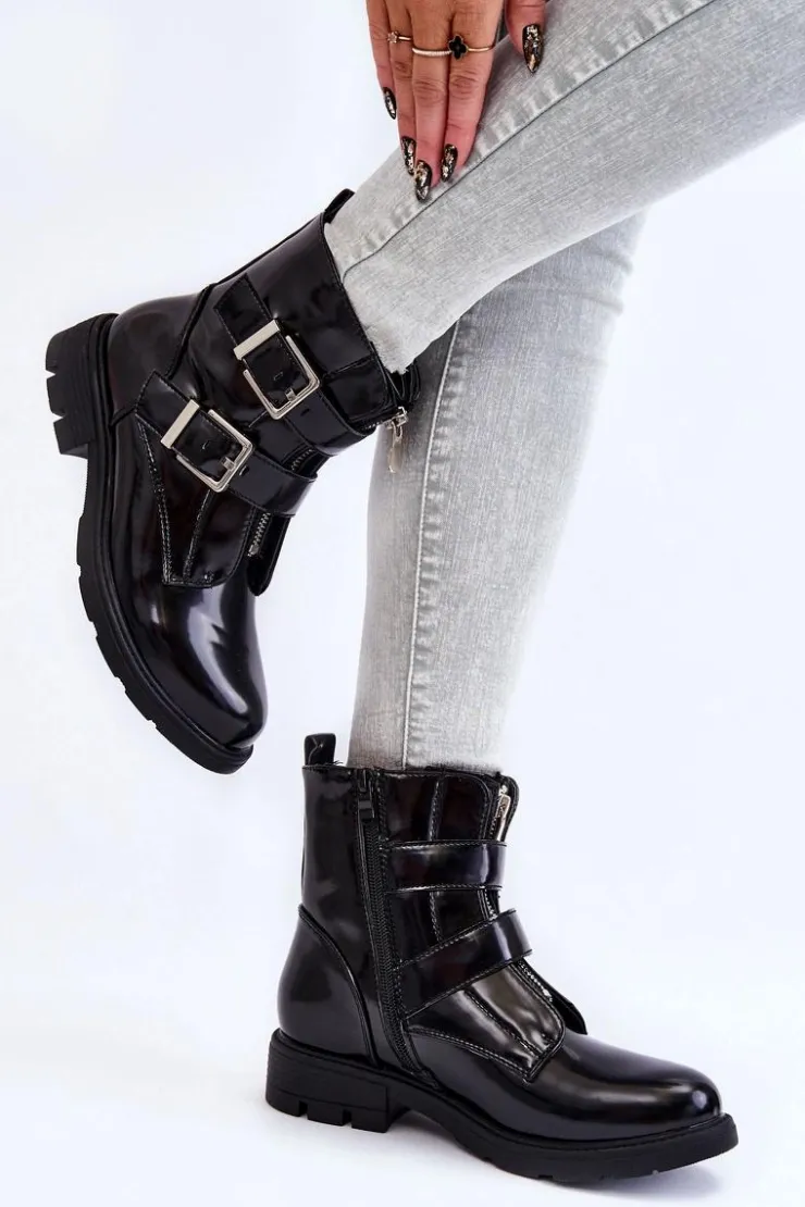 Boto Czarne Botki|Botki Zimowe Damskie*Damskie Ocieplane Botki Na Płaskim Obcasie Z Suwakiem Czarne Joshie