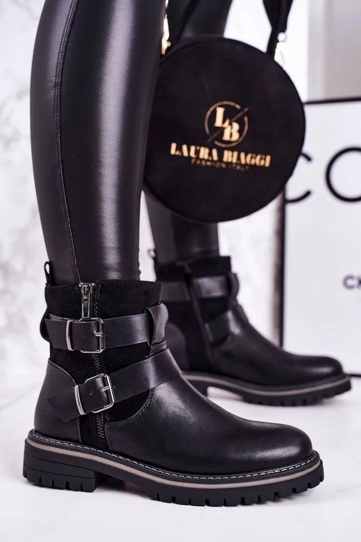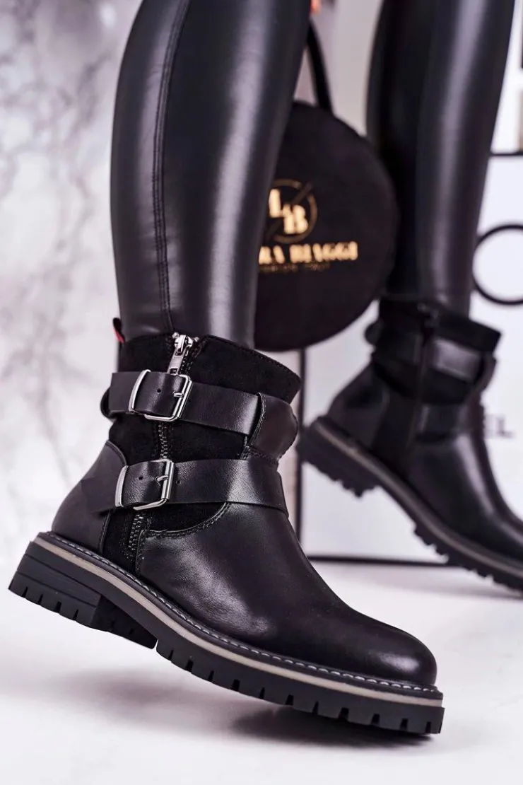 Boto Czarne Botki|Botki Zimowe Damskie*Damskie Ocieplane Botki Workery Czarne Intensity