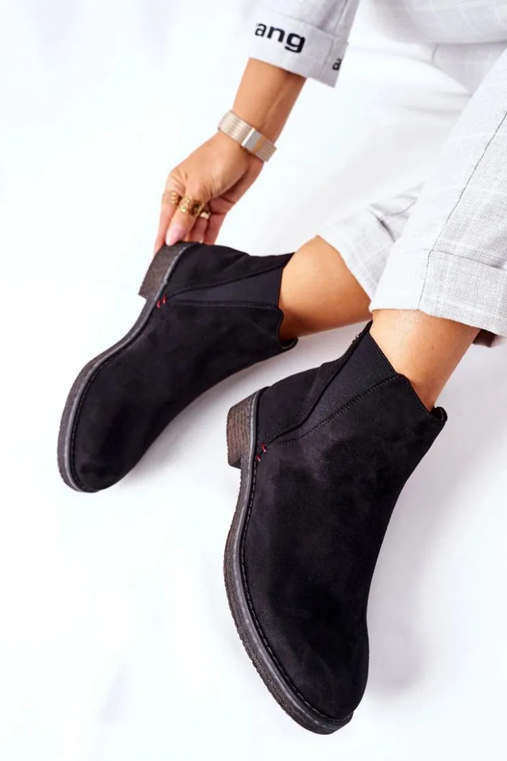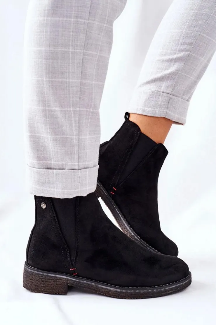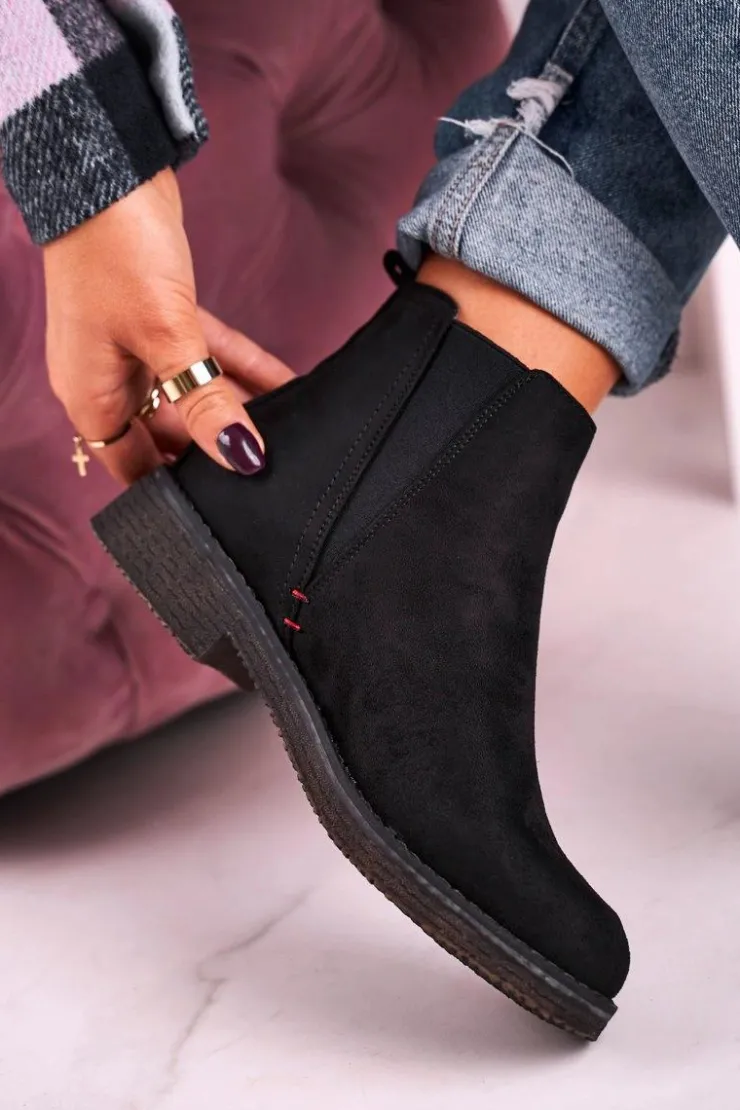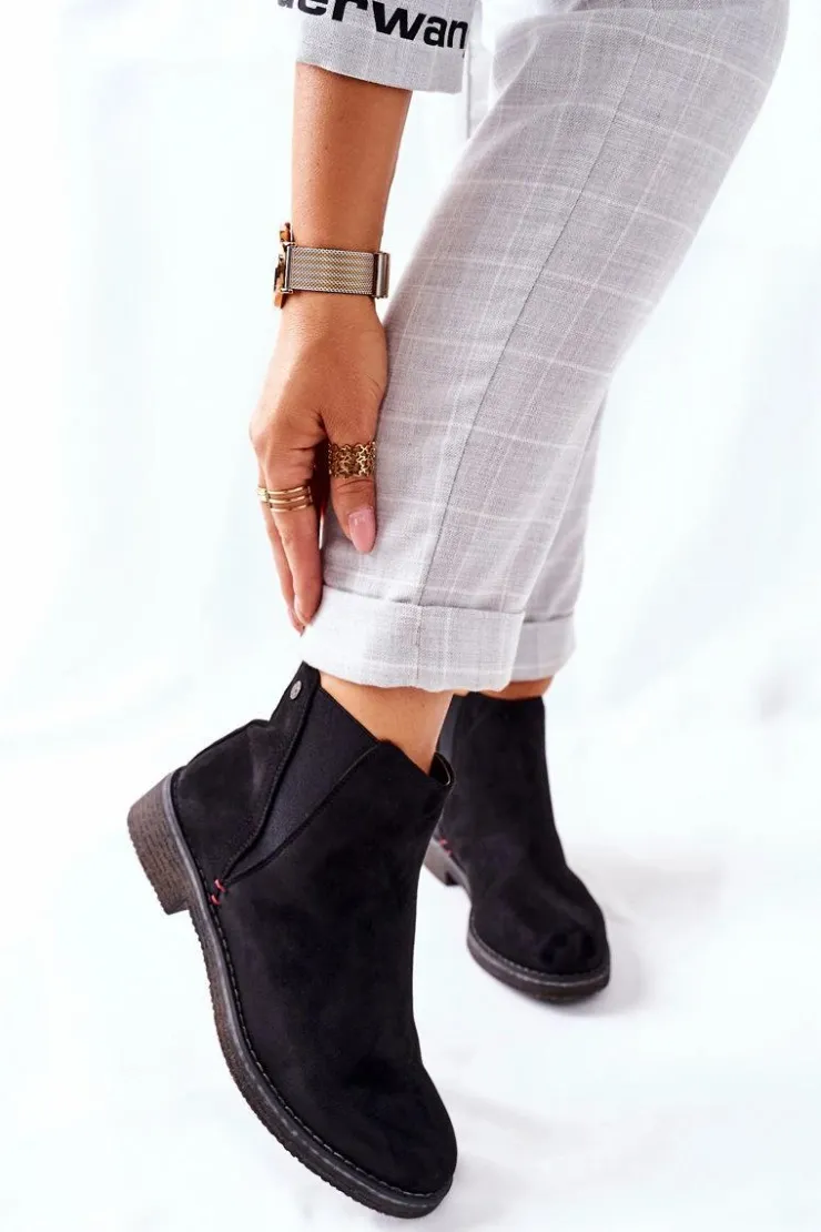 Boto Czarne Botki|Botki Zimowe Damskie*Klasyczne Damskie Botki Sztyblety Zamszowe Czarne Heather