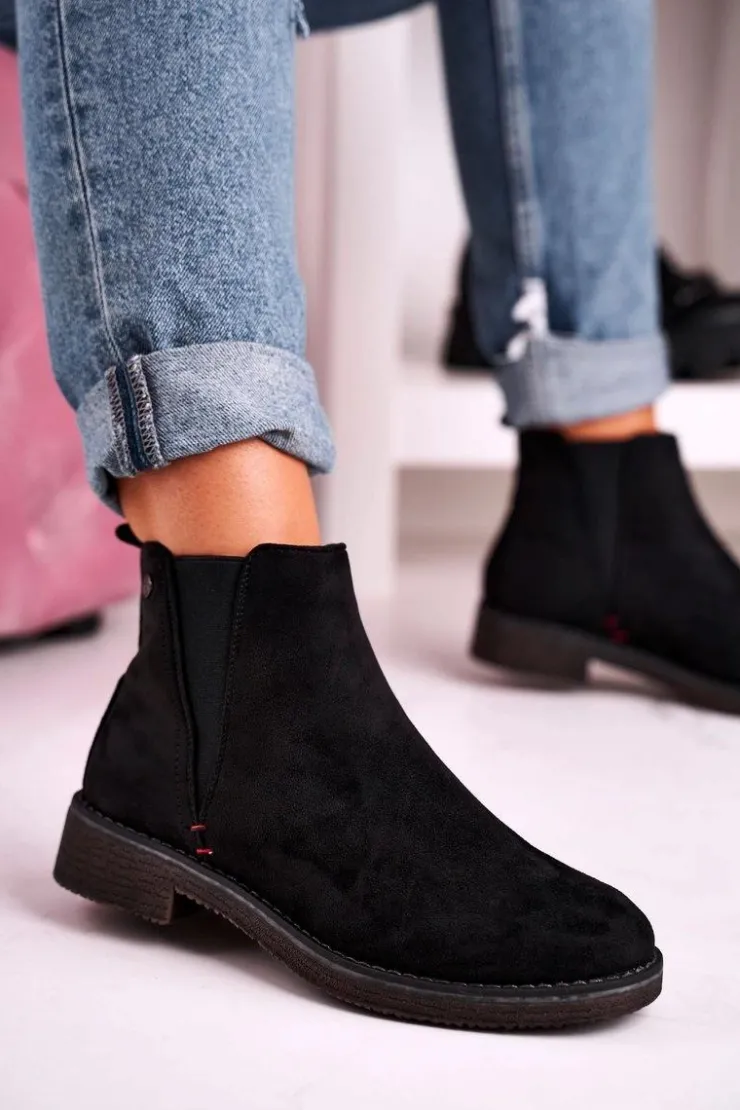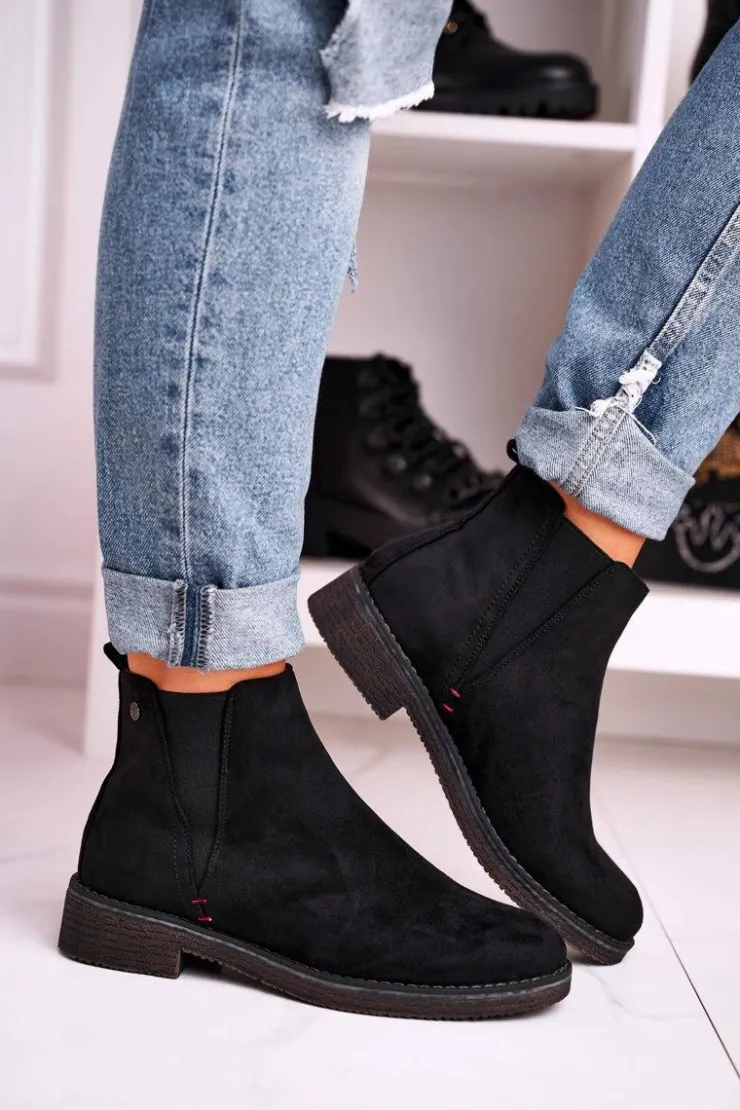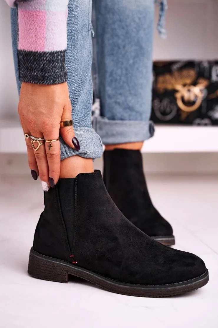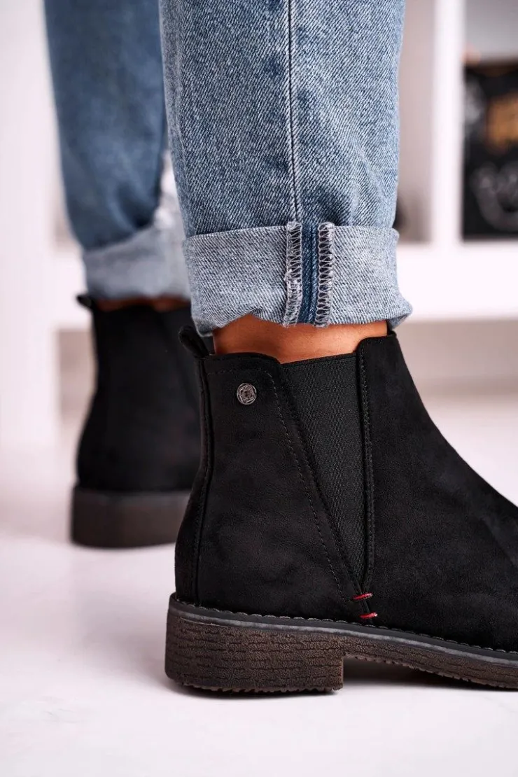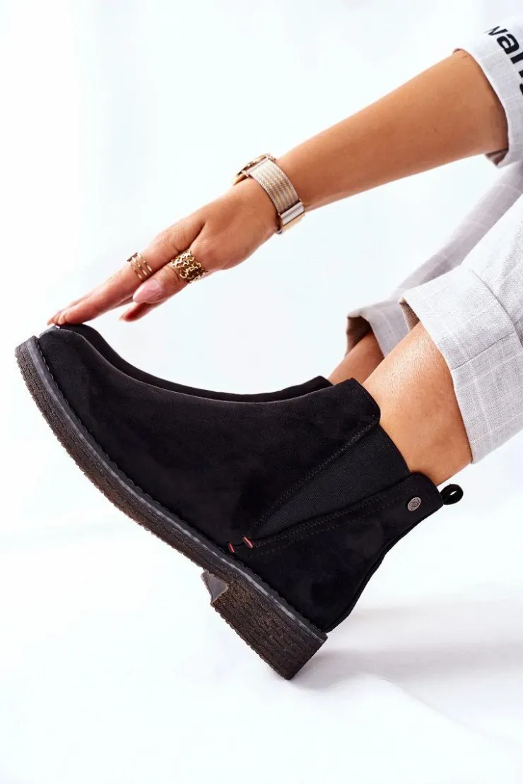 Boto Czarne Botki|Botki Zimowe Damskie*Klasyczne Damskie Botki Sztyblety Zamszowe Czarne Heather