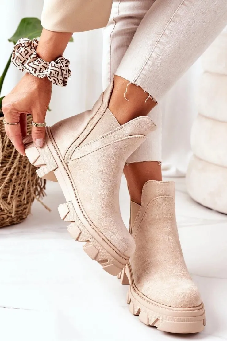 Sztyblety damskie wykonane z eko zamszu. Wnętrze botków ocieplone jest miłym w dotyku kocem obuwniczym. Dekoracyjne paski są odpinane. Przy wyborze rozmiaru prosimy sugerować się tabelą rozmiarów.