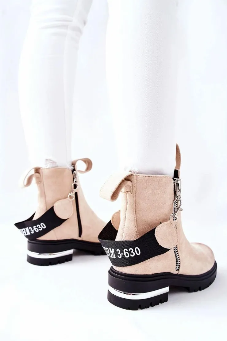 Botki damskie wykonane z eko zamszu. Wnętrze ocieplone jest miłym w dotyku kocem obuwniczym. Przy wyborze rozmiaru prosimy sugerować się tabelą rozmiarów.