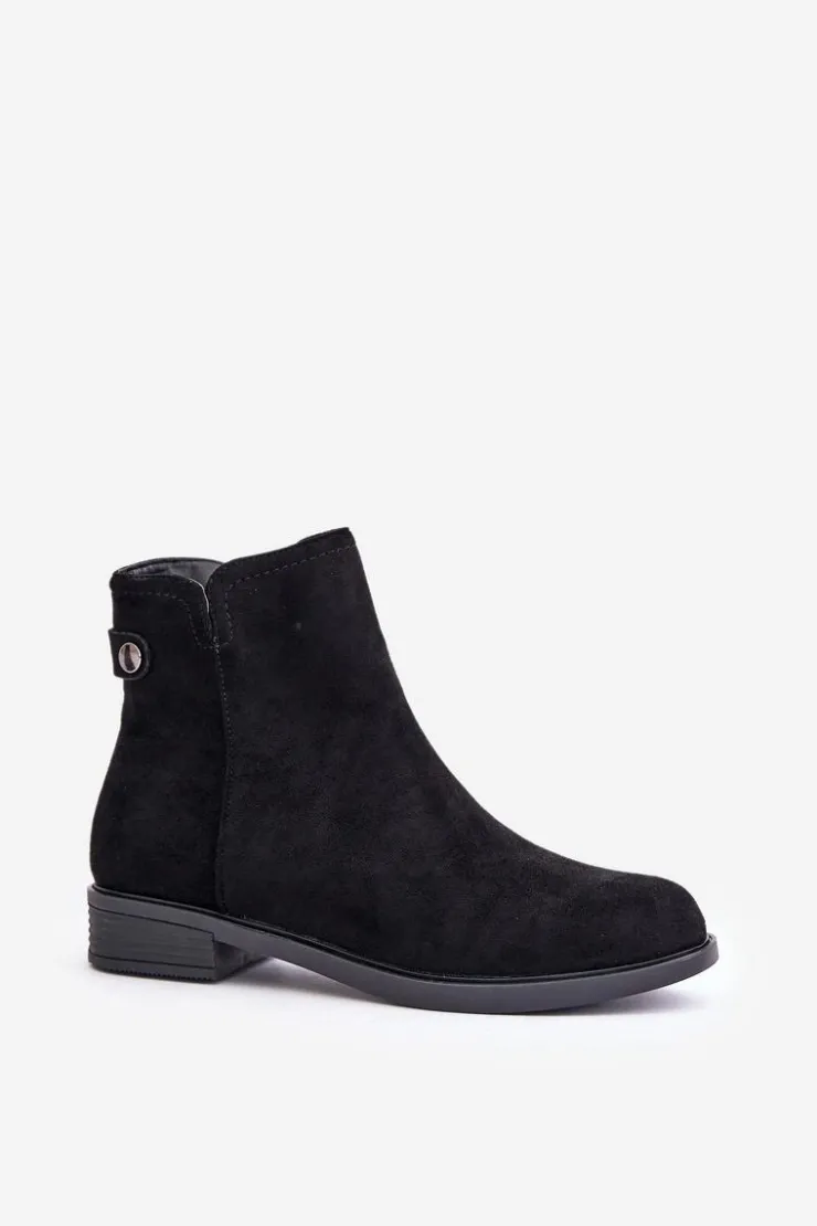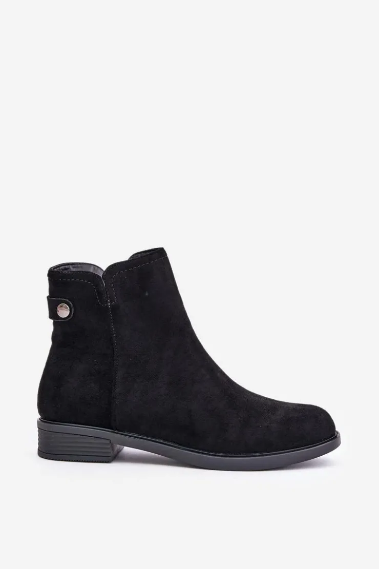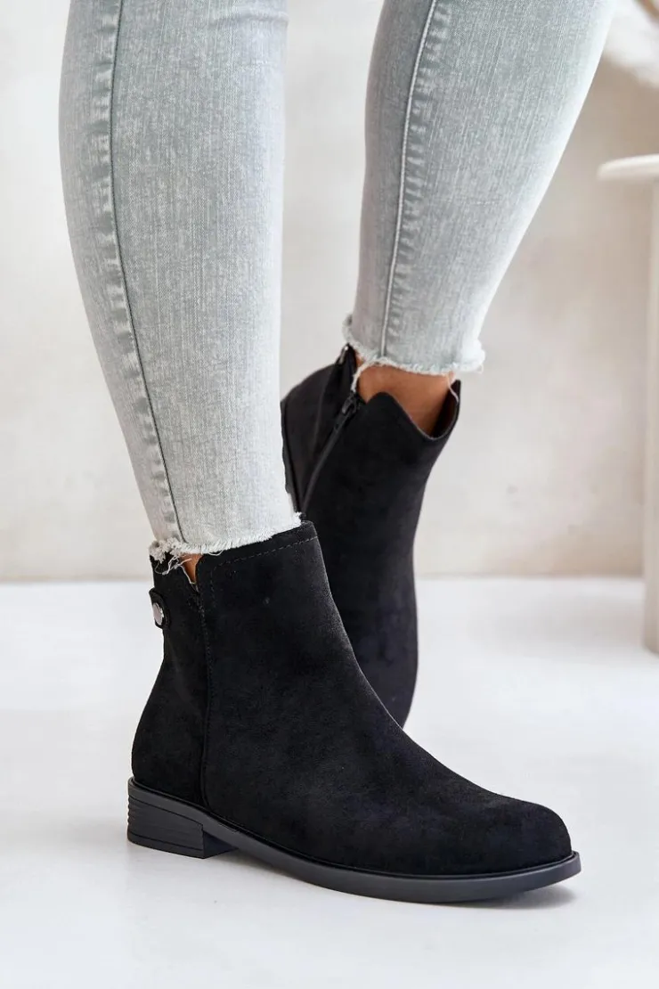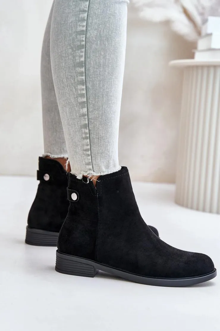 Boto Czarne Botki|Botki Zimowe Damskie*Ocieplane Niskie Botki Sztyblety Na Zamek Eko Zamszowe Czarne Telluara