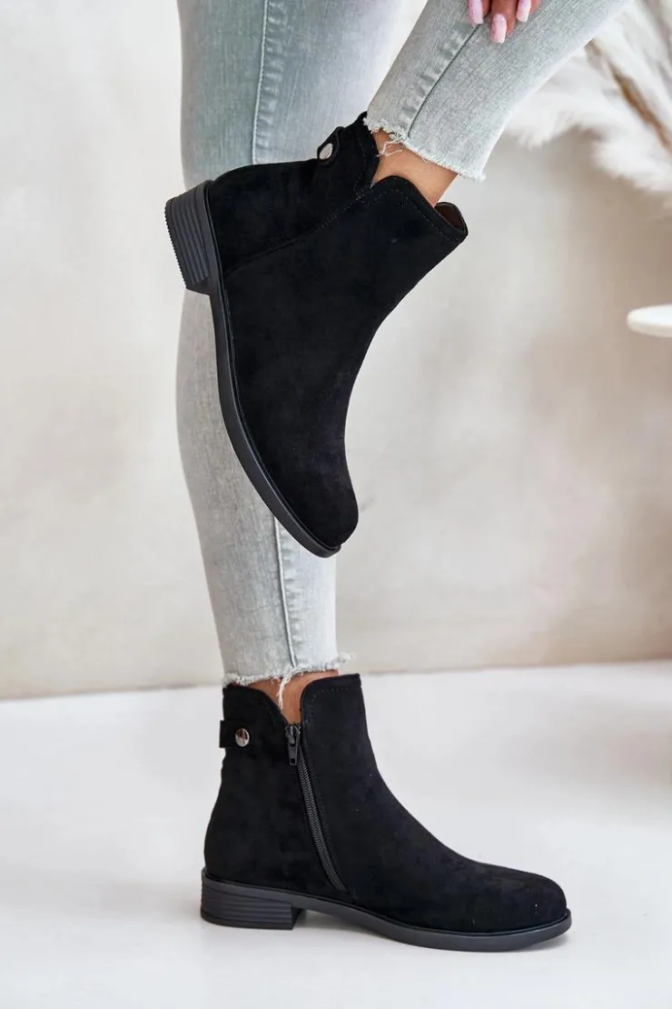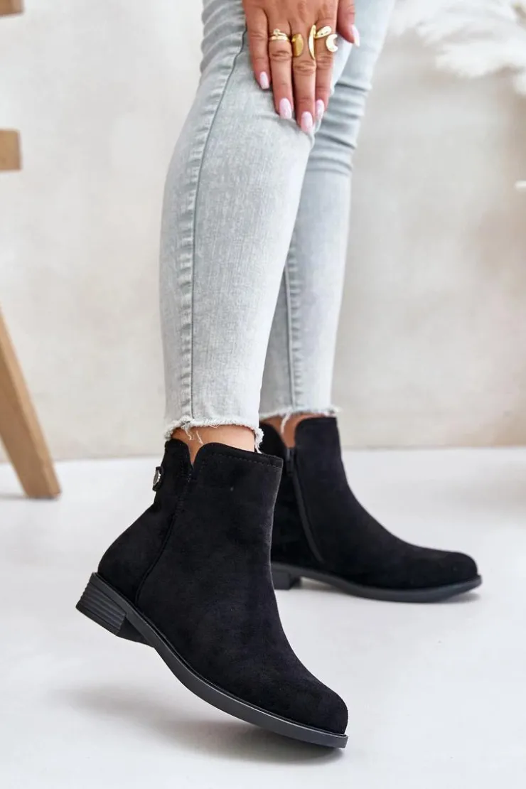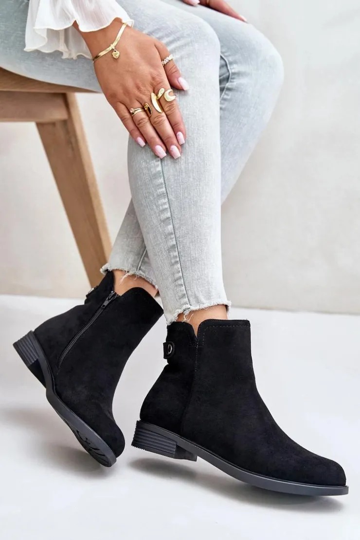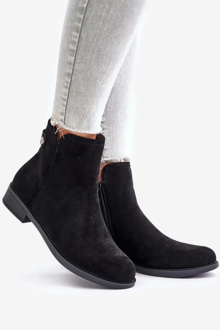 Boto Czarne Botki|Botki Zimowe Damskie*Ocieplane Niskie Botki Sztyblety Na Zamek Eko Zamszowe Czarne Telluara