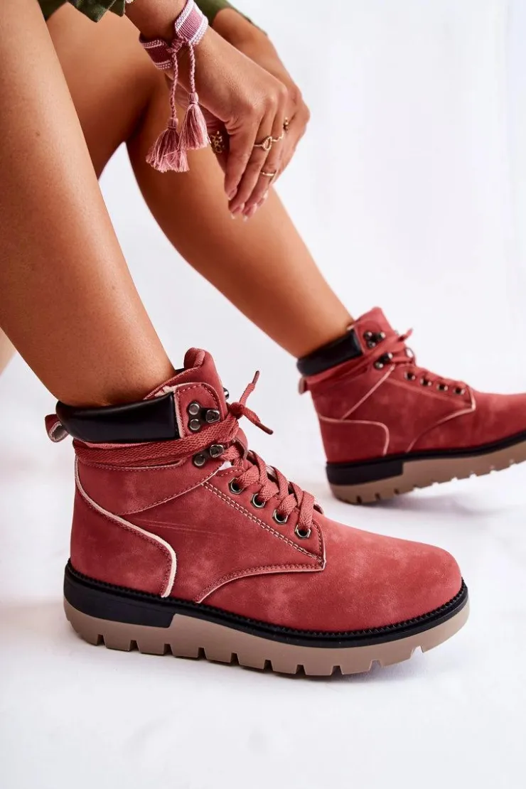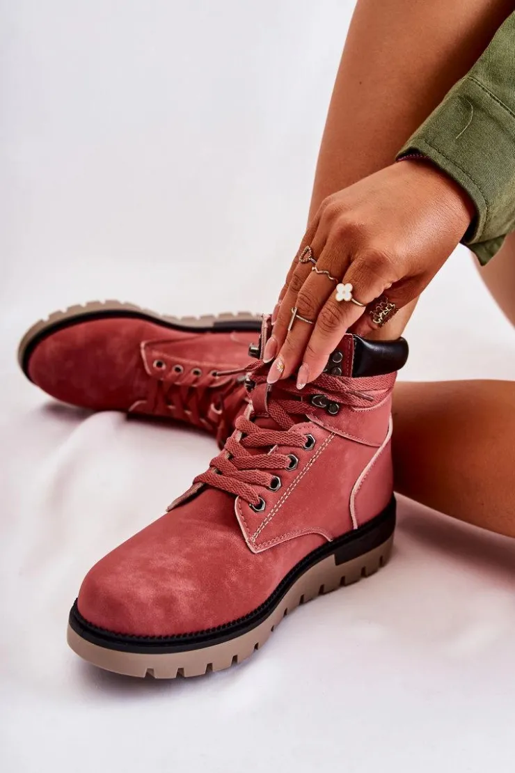 Botki damskie zostały wykonane z eko skóry. Model osadzony jest na platformie z charakterystycznymi żłobieniami. Posiadają zaokrąglony nosek. Cholewka zakrywająca kostkę z małą pętelką z tyłu ułatwiającą zakładanie obuwia. Wkładka oraz wyściółka ocieplone kocem obuwniczym. Klasyczne wiązanie na płaskie sznurowadła pozwoli na odpowiednie dopasowanie obuwia do tęgości nogi. Przy wyborze rozmiaru prosimy sugerować się tabelą rozmiarów.