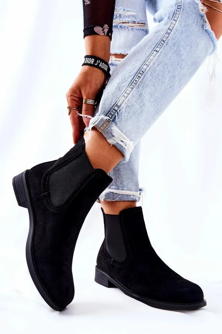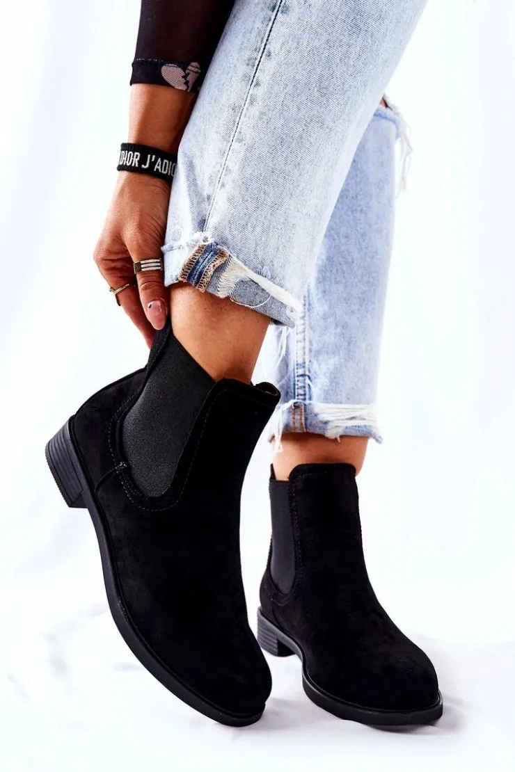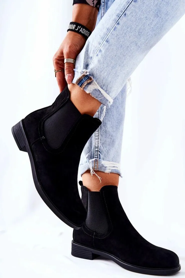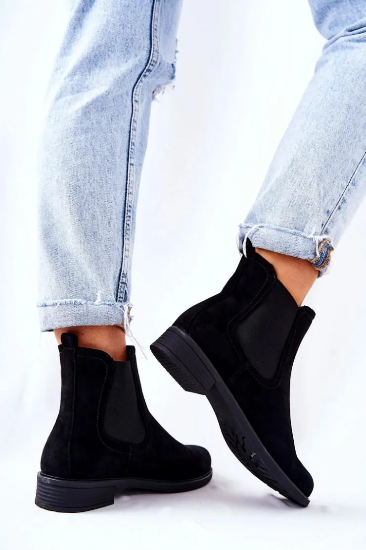 Boto Czarne Botki|Botki Zimowe Damskie*Zamszowe Botki Sztyblety Czarne Astate