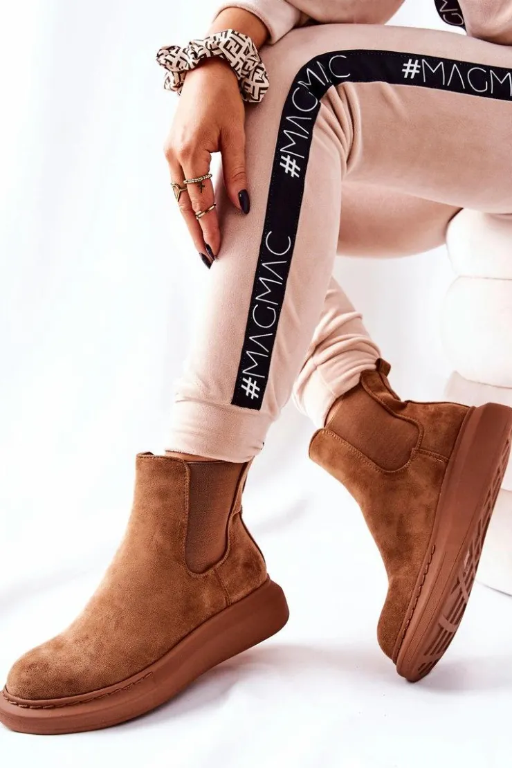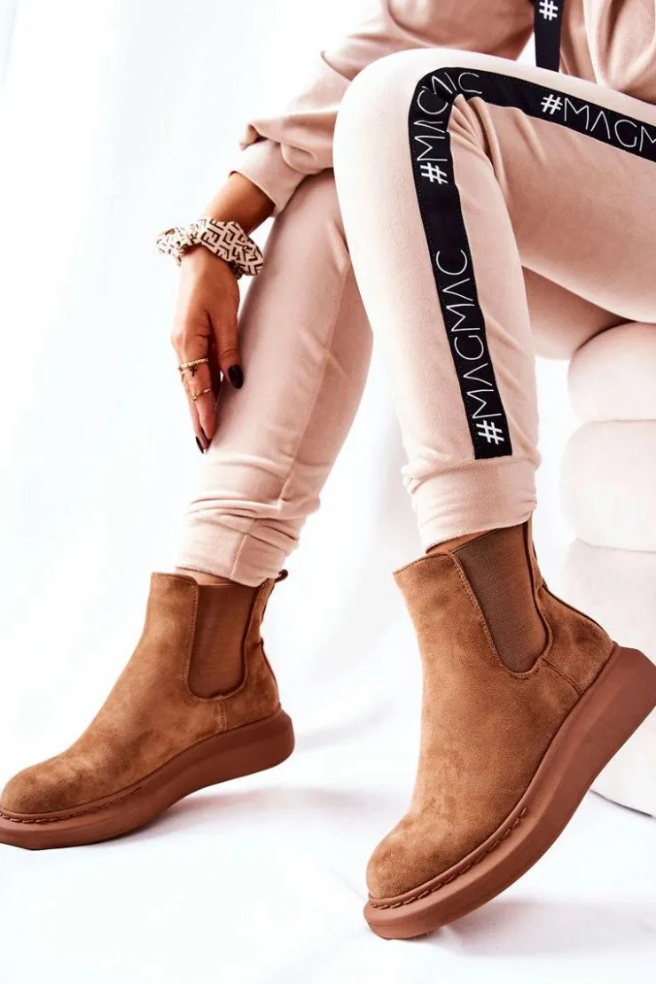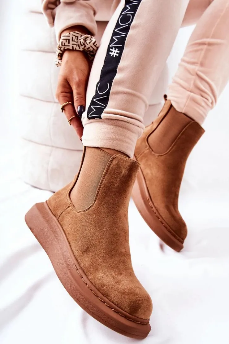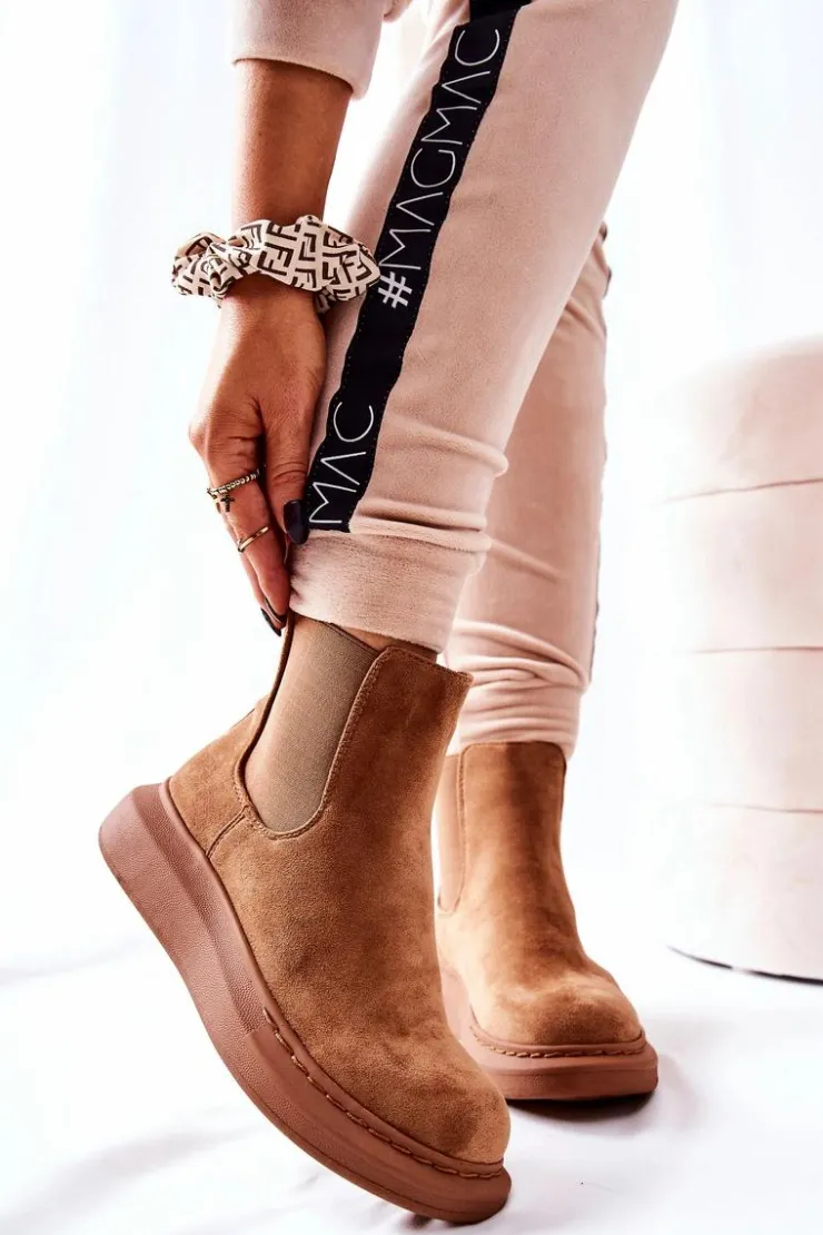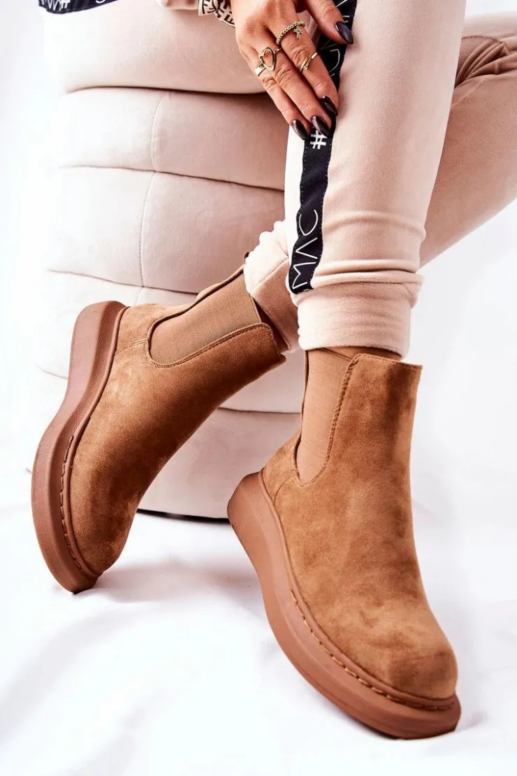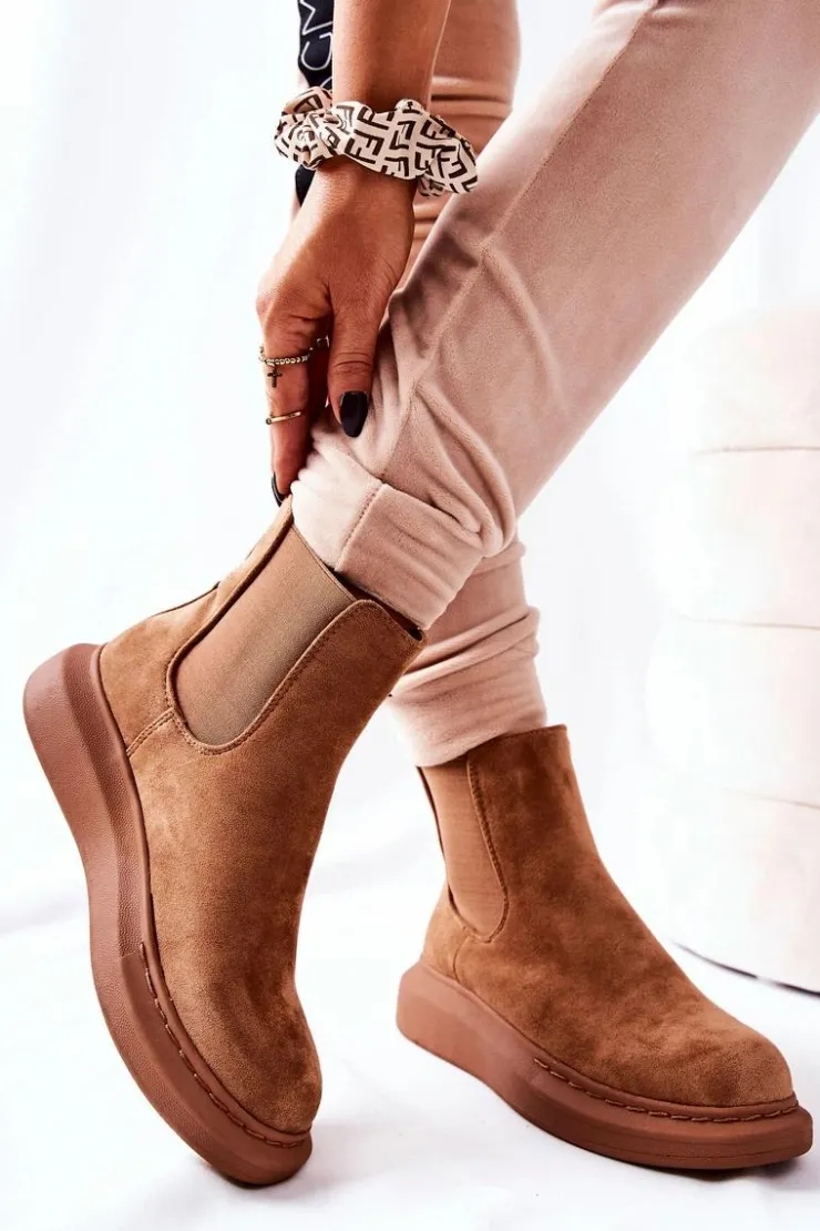 Boto Czarne Botki|Botki Zimowe Damskie*Zamszowe Botki Sztyblety Na Platformie Beżowe Marissa