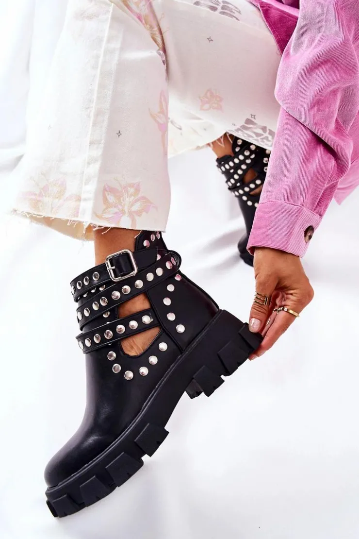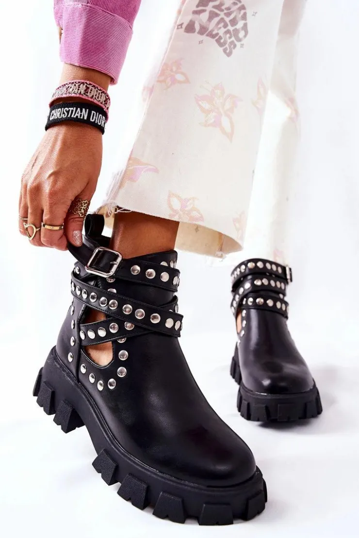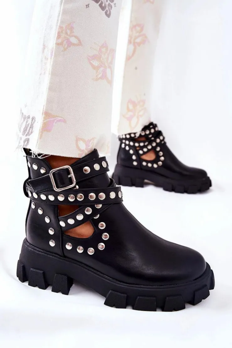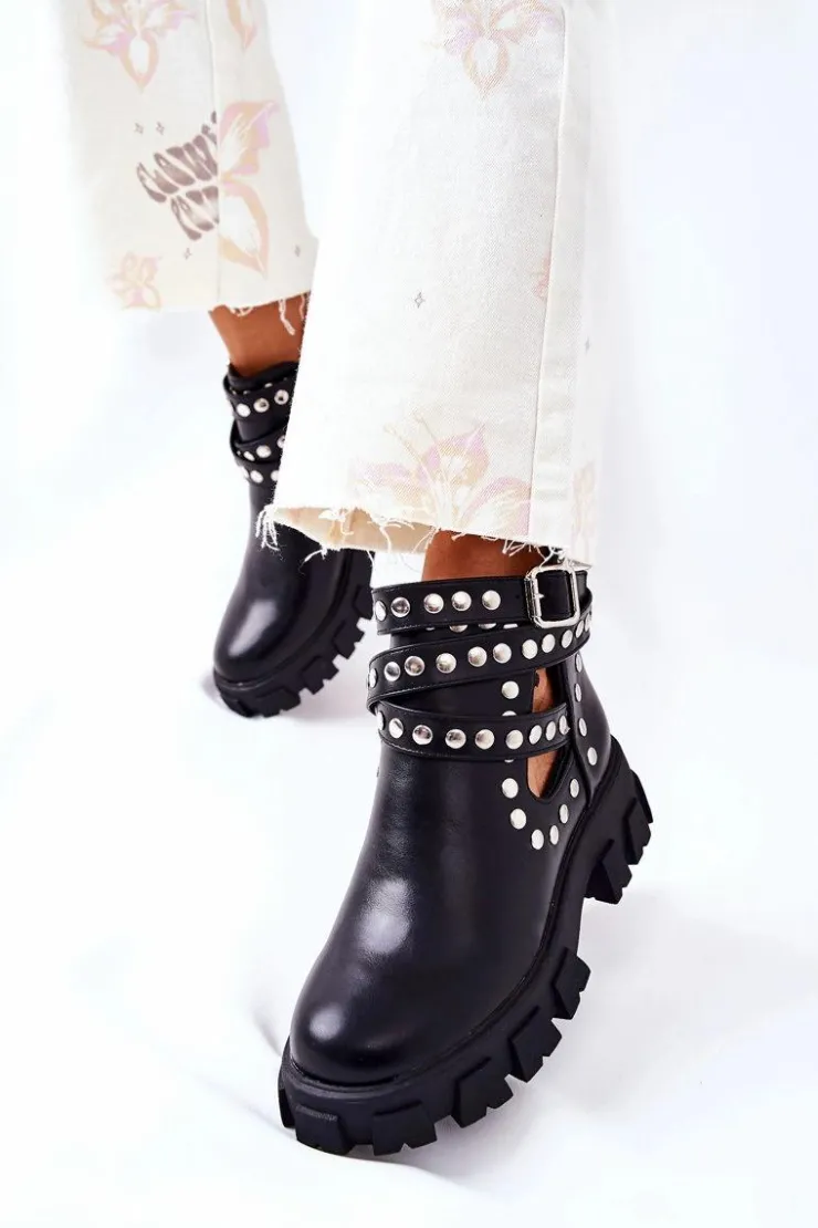 Boto Czarne Botki|Brązowe I Beżowe Botki*Workery Z Dżetami Na Platformie Czarne Vernelle