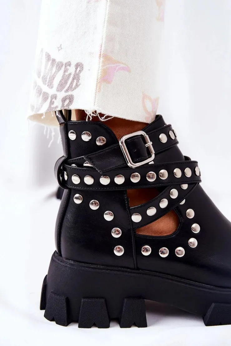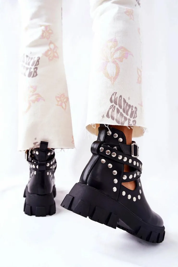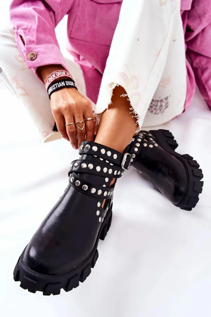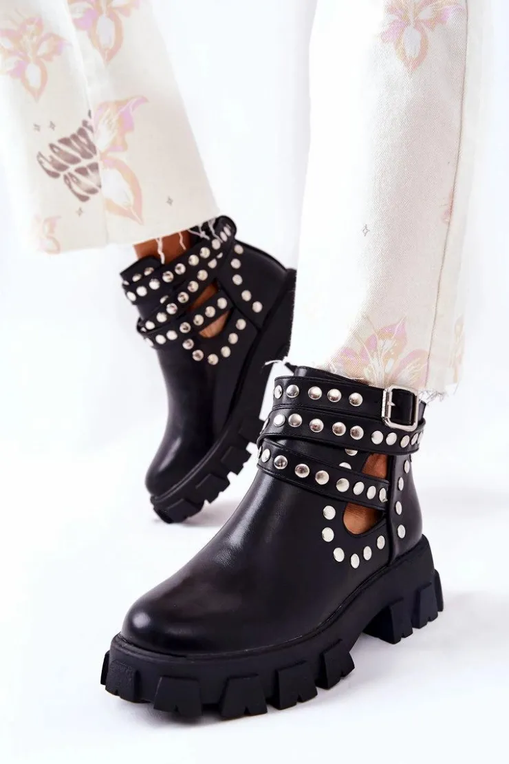 Boto Czarne Botki|Brązowe I Beżowe Botki*Workery Z Dżetami Na Platformie Czarne Vernelle