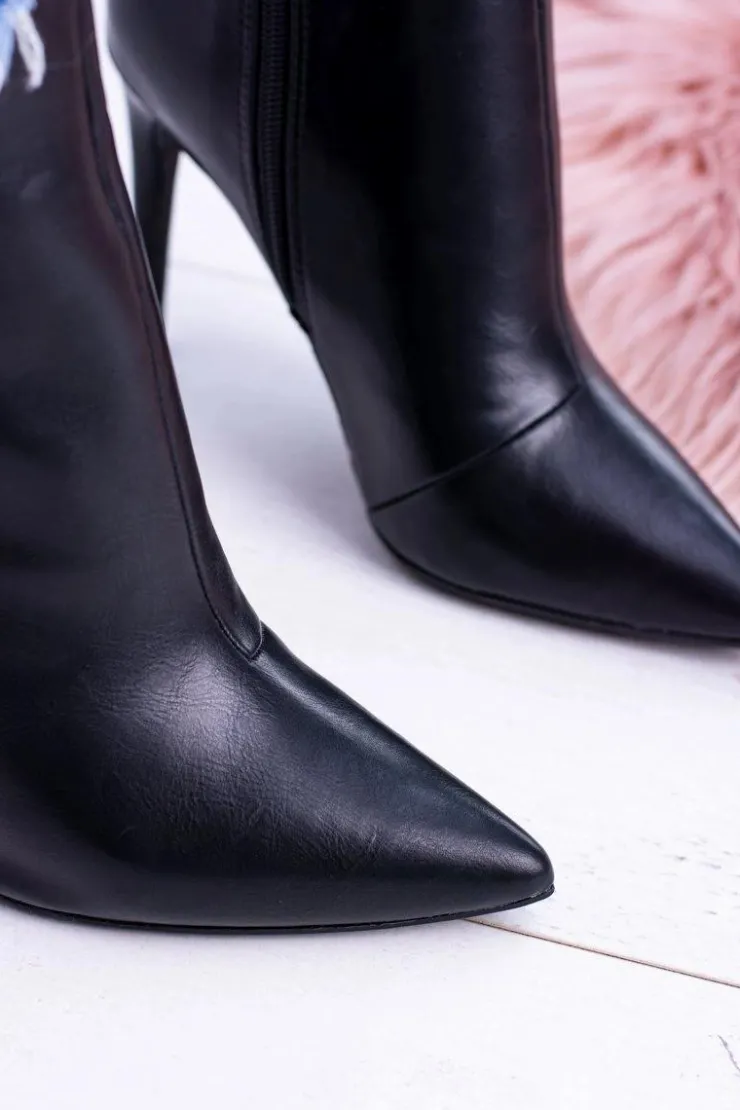 Boto Czarne Botki*Czarne Wysokie Botki Na Szpilce Remos