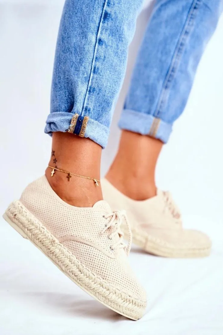 Boto Czarne Espadryle*Espadryle Damskie Na Platformie Lniane Beżowe Sonya