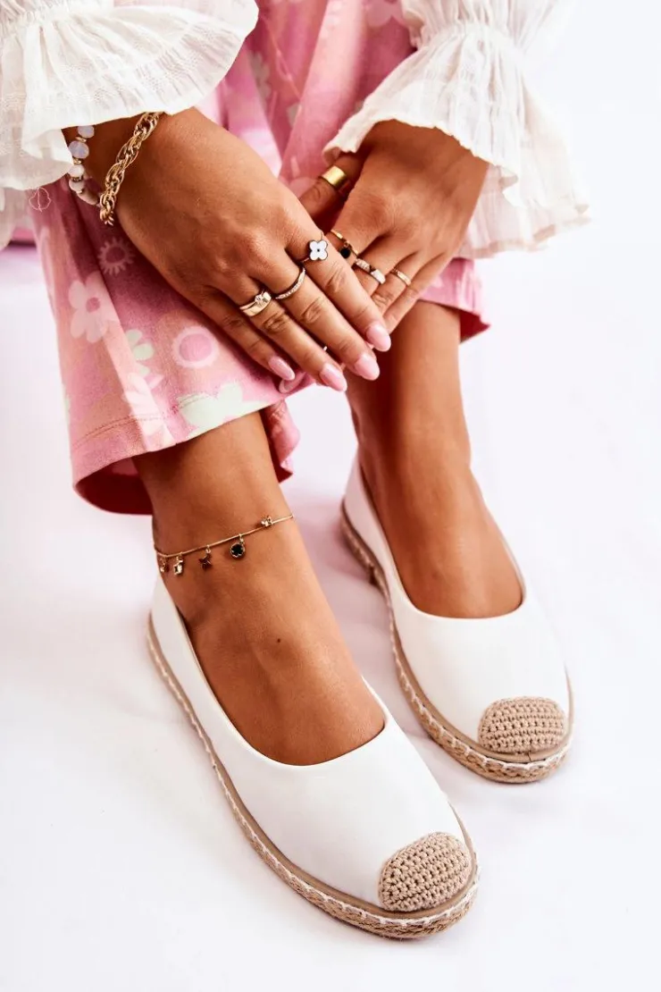 Klasyczne espadryle damskie zostały wykonane z eko skóry. Buty te będą pasować do wielu stylizacji. Posiadają na nosku plecionkę. Osadzone na płaskim obcasie. Wokół platformy znajduje się pleciony, jutowy warkocz. Wkładka wykonana z eko skóry jest bardzo miękka i wygodna podczas użytkowania. Koniecznie sprawdź całą naszą kolekcję damskich espadryli. Przy wyborze rozmiaru prosimy sugerować się tabelą rozmiarów.