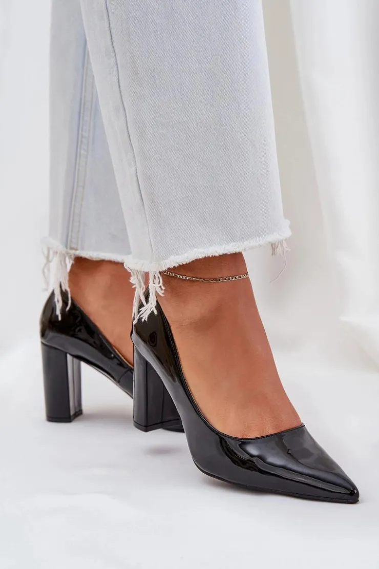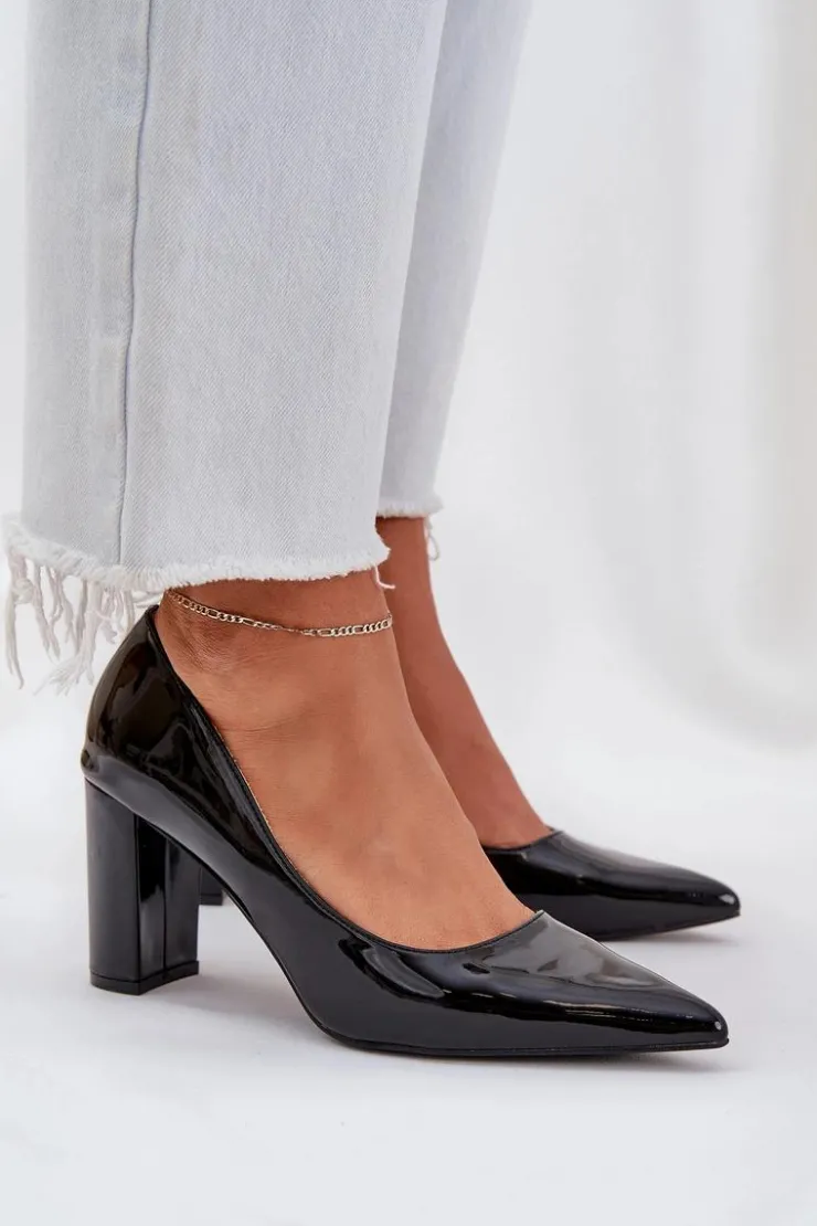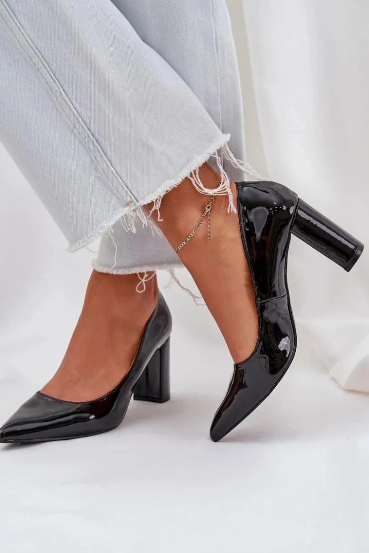 Lakierowane czółenka z eko skóry to elegancka propozycja, która doda szyku każdej stylizacji. Osadzone na obcasie słupku, zapewniają stabilność i wygodę przez cały dzień. Noski w szpic dodają im wyrafinowanego charakteru, a miękka wkładka gwarantuje komfort noszenia. Te czółenka to doskonały wybór na wieczorne wyjścia lub formalne spotkania. Przy wyborze rozmiaru prosimy kierować się tabelą rozmiarów