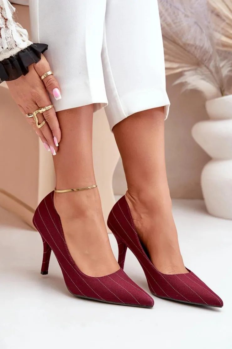 Damskie szpilki wykonane z wysokiej jakości materiału tekstylnego, które doskonale łączą elegancję i wygodę. Model z klasycznym, spiczastym noskiem optycznie wysmukla stopę, a miękka wkładka gwarantuje komfort nawet podczas długiego noszenia. Idealne na specjalne okazje lub dopełnienie stylowych, wieczorowych stylizacji. Przy wyborze rozmiaru prosimy sugerować się tabelą rozmiarów.