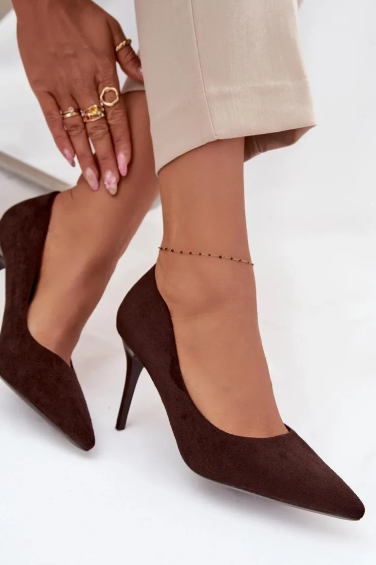 Szpilki damskie z eko zamszu to klasyka, która nigdy nie wychodzi z mody. Wykonane z przyjemnego w dotyku, eleganckiego materiału doskonale podkreślają kobiecy styl i dodają szyku każdej stylizacji. Smukłe, szpiczaste noski optycznie wydłużają nogi, a subtelna linia buta sprawia, że prezentują się niezwykle lekko i zgrabnie. Dzięki miękkiej wkładce szpilki są nie tylko efektowne, ale także wygodne – idealne zarówno na specjalne okazje, jak i do codziennych eleganckich zestawów. Obcas wysmukla sylwetkę, a jednocześnie zapewnia stabilność podczas chodzenia. Te buty będą doskonałym wyborem do sukienki, spódnicy czy eleganckich spodni, świetnie sprawdzą się na przyjęciach, weselach, spotkaniach biznesowych czy wieczornych wyjściach.