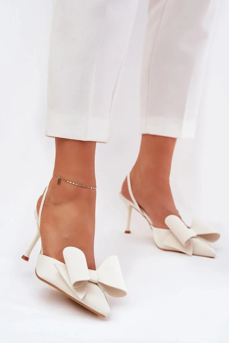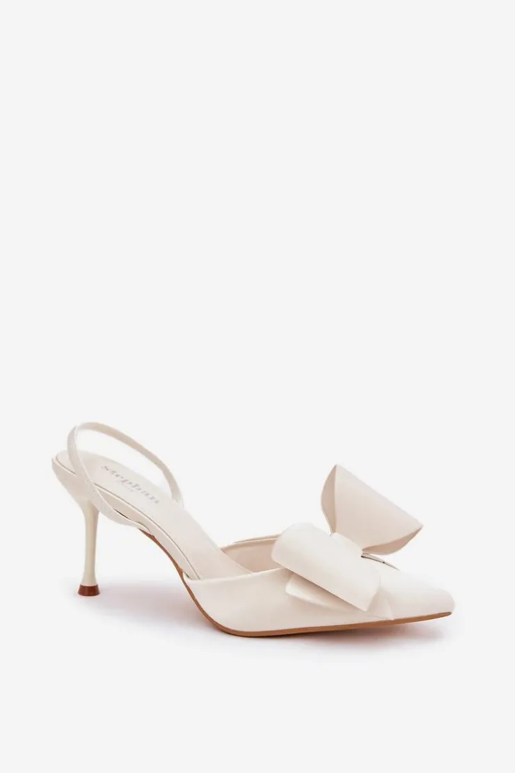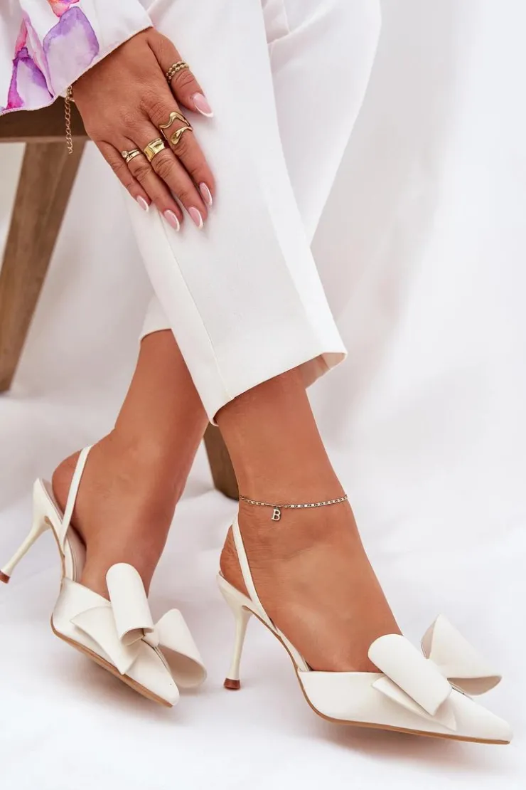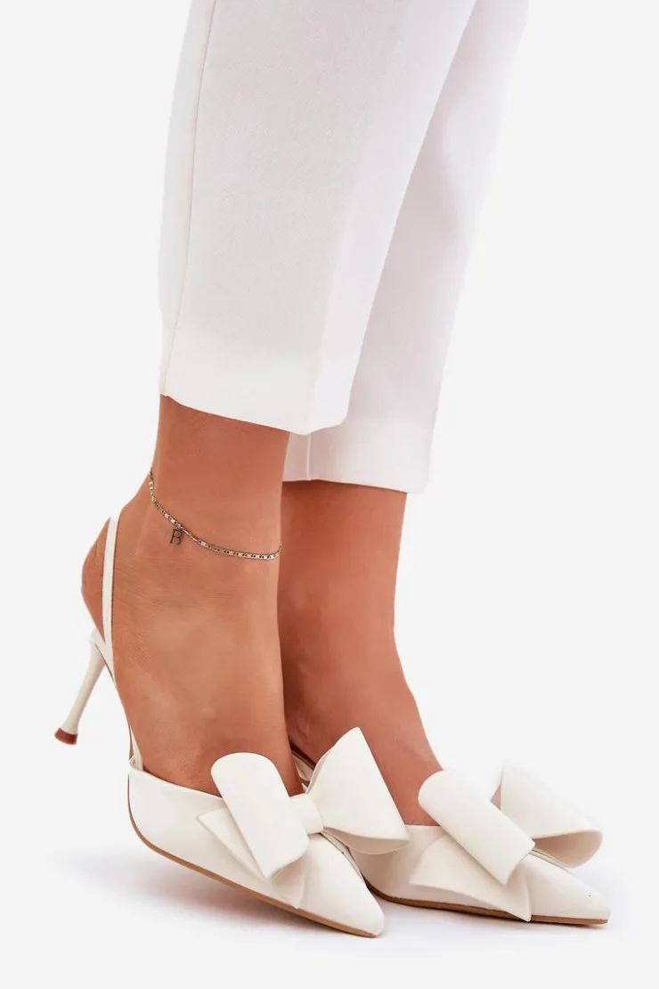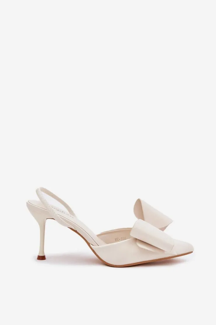Eleganckie szpilki damskie z odkrytą piętą stanowią doskonały wybór dla kobiet, które pragną połączyć styl z komfortem. Wykonane z materiału tekstylnego. Szpiczaste noski podkreślają ich delikatną elegancję, a kokardka umieszczona z przodu dodaje im dodatkowego wdzięku. Świetnie sprawdzą się na różnorodne okazje, od oficjalnych spotkań po wieczorne wyjścia. Przy wyborze rozmiaru prosimy sugerować się tabelą rozmiarów.