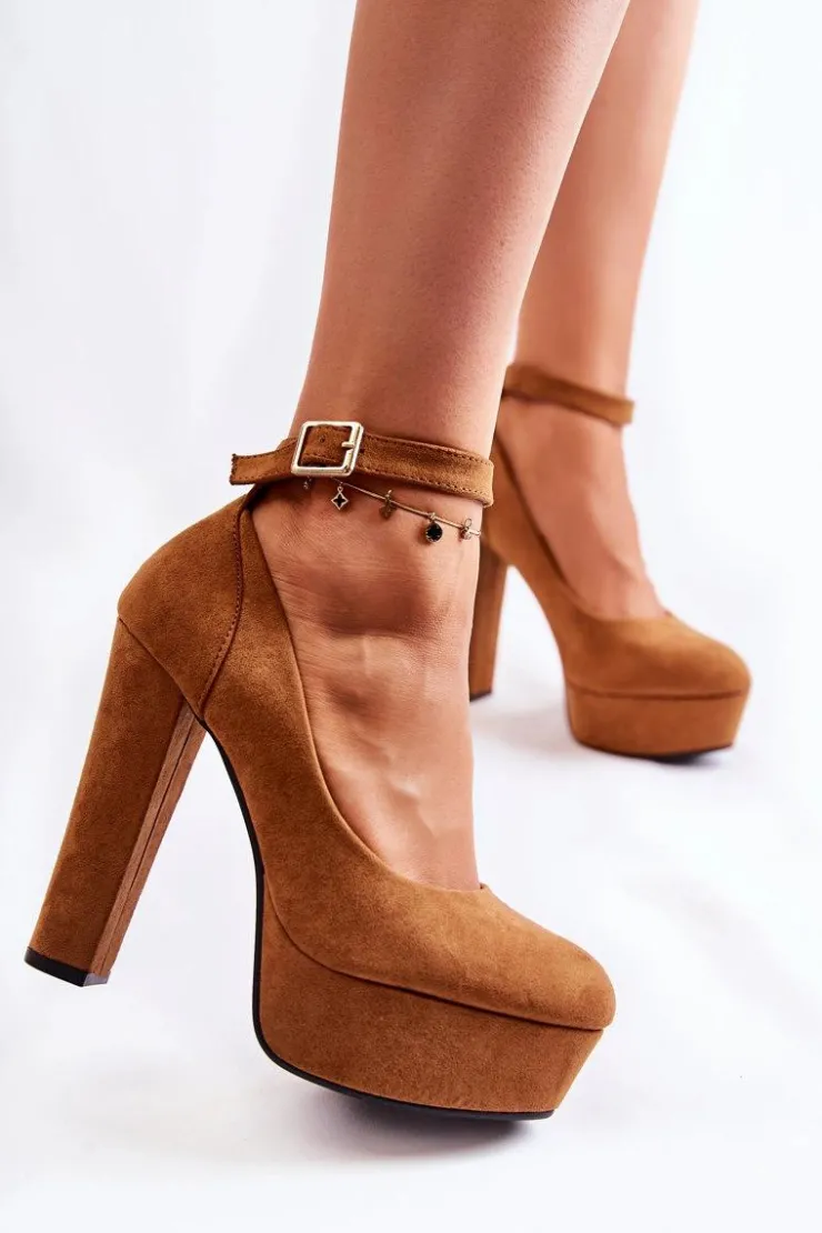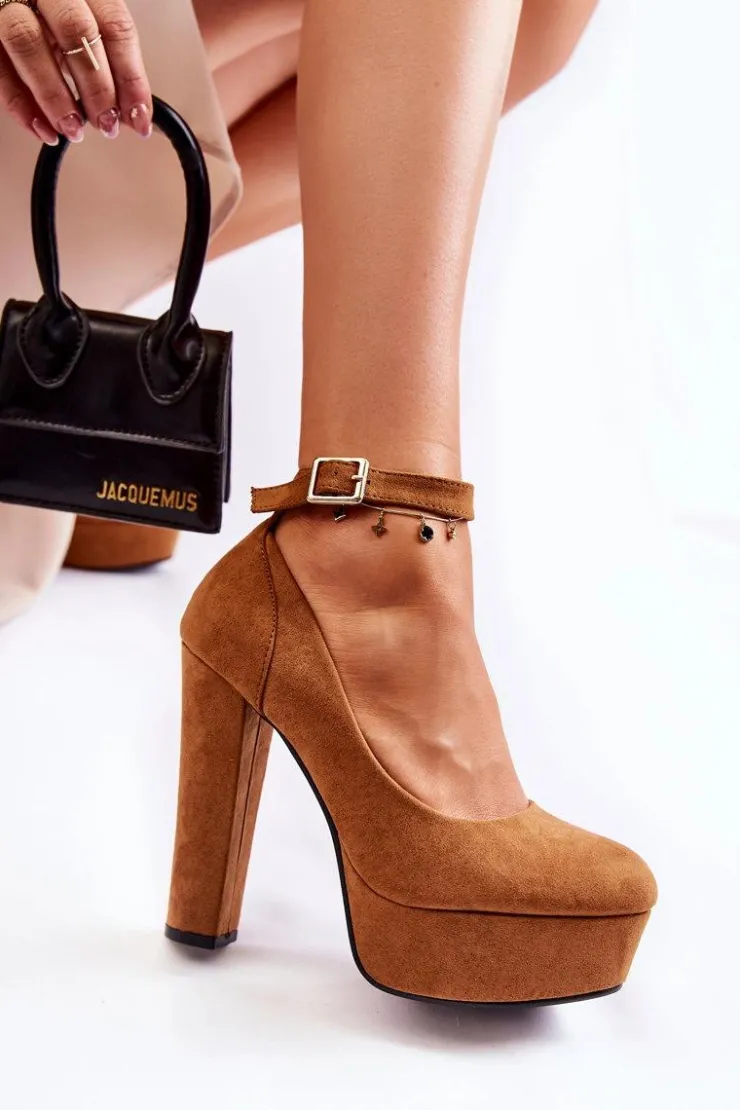 Czółenka zostały wykonane z eko zamszu. Wysoki obcas oraz platforma uniesie delikatnie sylwetkę. Miękka wkładka wykonana z eko skóry zapewnia komfort i wygodę podczas użytkowania. Czółenka zapinane na sprzączkę z regulowanym paskiem. Posiadają usztywniany zapiętek. W tych butach na pewno wyróżnisz się z tłumu! Koniecznie sprawdź także pozostałe nasze czółenka! Przy wyborze rozmiaru prosimy kierować się tabelą rozmiarów