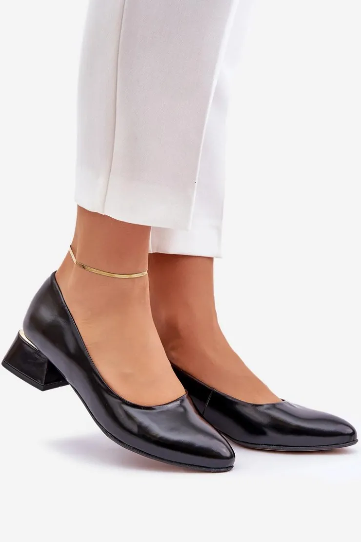 Buty zostały wykonane z wysokogatunkowej skóry naturalnej. Posiadają miękką, skórzaną wkładkę. Eleganckie czółenka pasują na wiele okazji. Obcas wykończony ozdobnym elementem. Bardzo wygodny model. Dzięki stabilnemu obcasowi są bardzo komfortowe w noszeniu przez wiele godzin. Sprawdź także inne modele czółenek! Przy wyborze rozmiaru prosimy sugerować się tabelą rozmiarów.