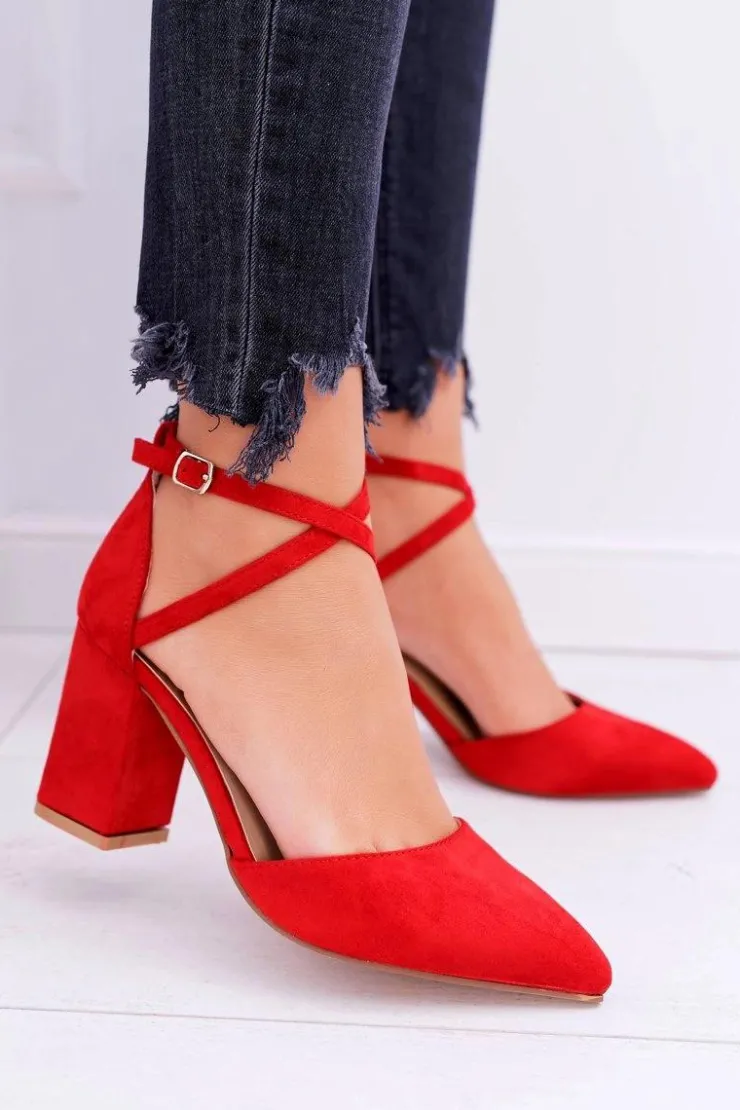 Boto Czółenka Zamszowe|Czółenka Na Słupku*Czółenka Damskie Na Słupku W Szpic Czerwone Traffic