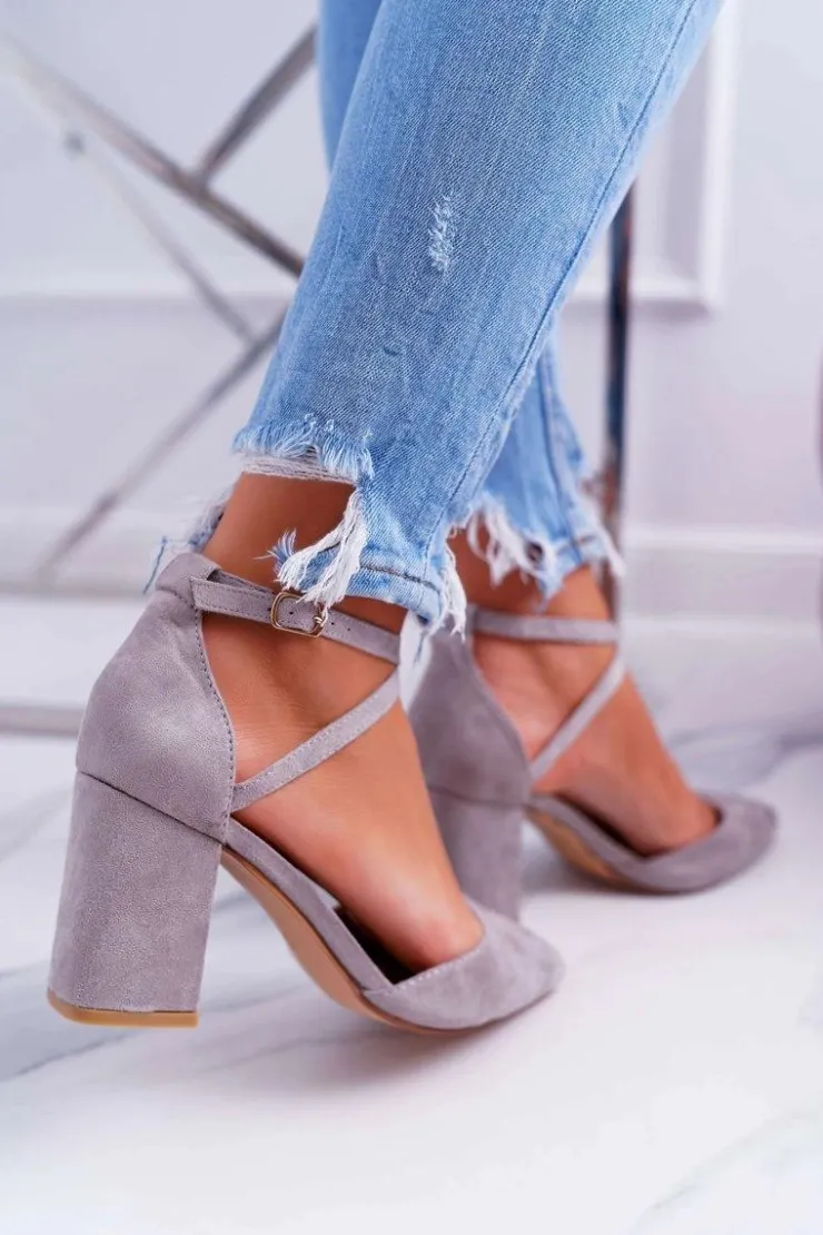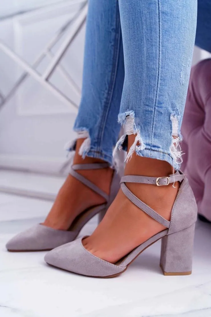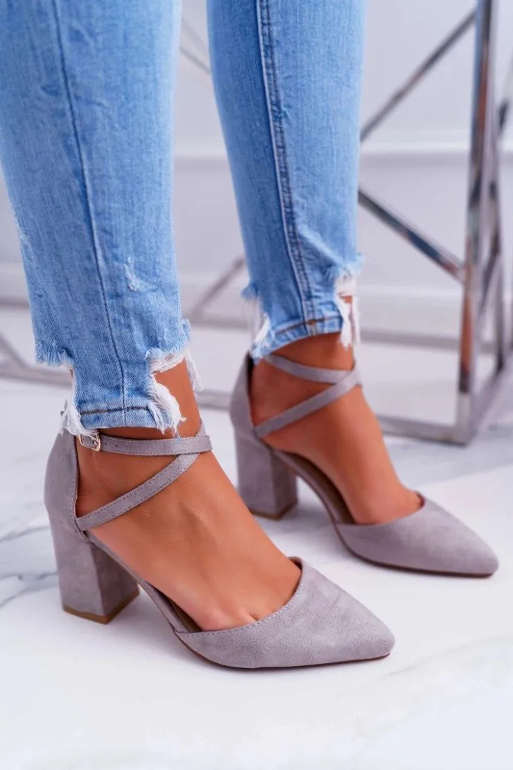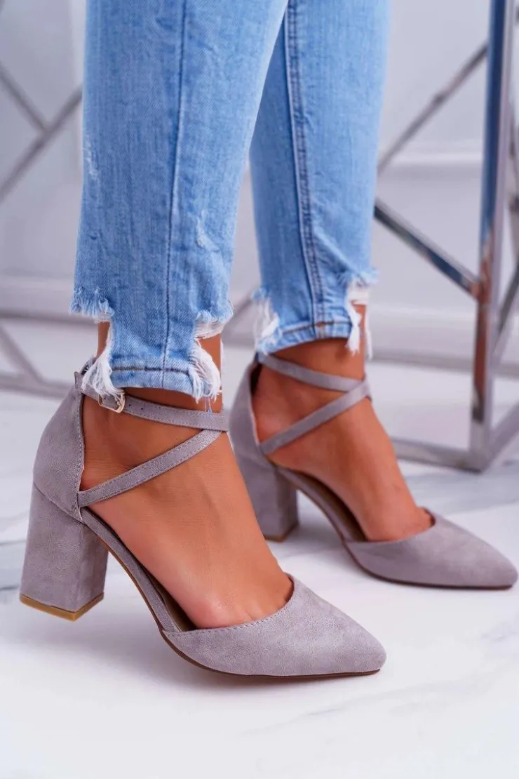 Boto Czółenka Zamszowe|Czółenka Na Słupku*Czółenka Damskie Na Słupku W Szpic Szary Cosmo