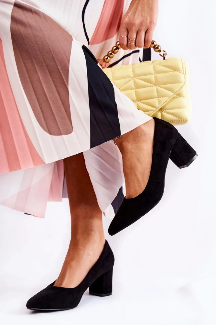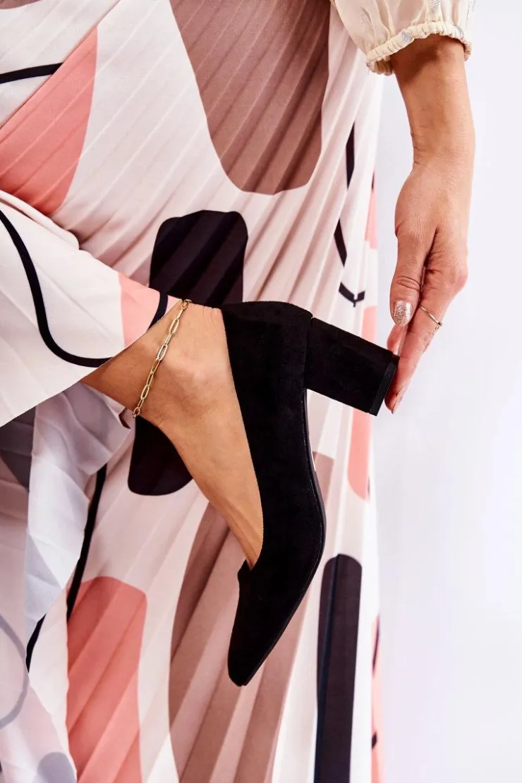 Klasyczne czółenka świetnie sprawdzą się do wielu stylizacji! Wykonane z eko zamszu. Osadzone na stabilnym słupku. Posiadają usztywniany zapiętek. O komfort zadba miękka, eko skórzana wkładka. Nosek w szpic. Model wsuwany. Świetnie sprawdzą się zarówno do pracy, jak i na różnego rodzaju uroczystości. Koniecznie sprawdź także pozostałe modele czółenek dostępnych w naszej ofercie! Przy wyborze rozmiaru prosimy kierować się tabelą rozmiarów