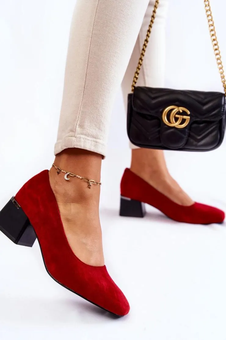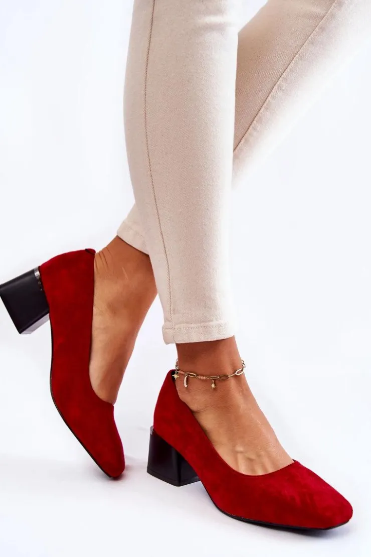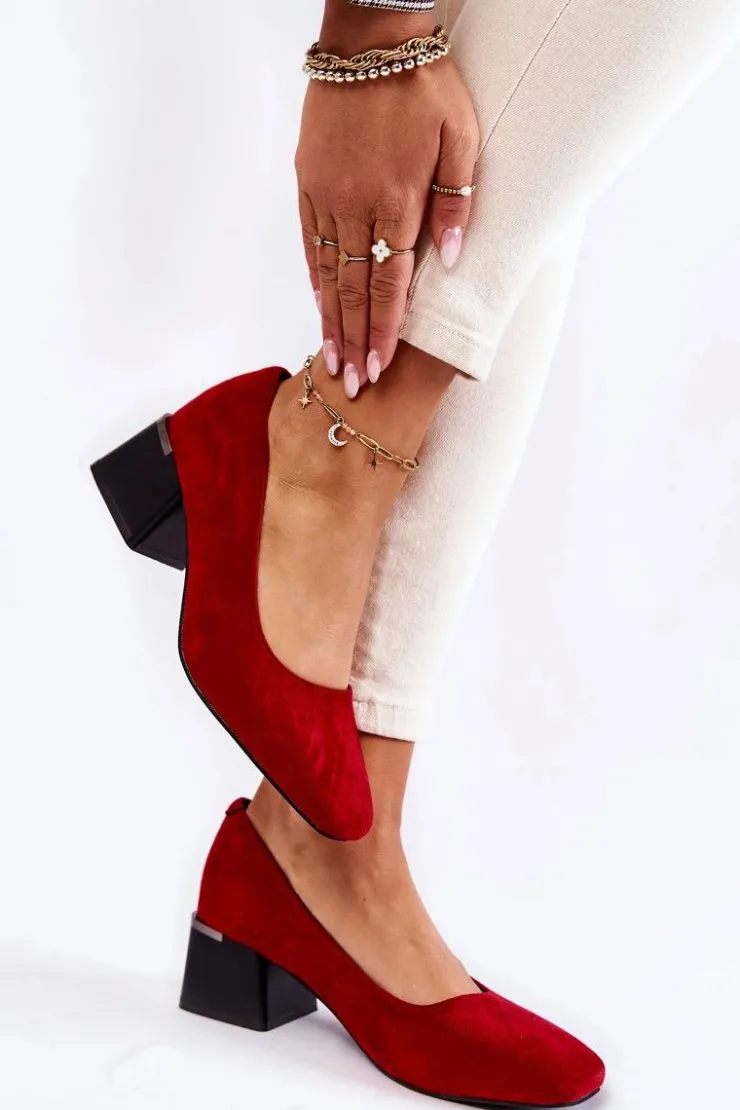 Klasyczne czółenka zostały wykonane z wysokiej jakości eko skórzanych materiałów. Posiadają usztywniany zapiętek oraz kwadratowy nosek. Świetny model do wielu stylizacji! Czółenka te posiadają miękką wkładkę wykonaną z naturalnej skóry, która zapewni wygodę podczas użytkowania. Zostały osadzone na obcasie w postaci klocka, co gwarantuje stabilizację. Przy wyborze rozmiaru prosimy sugerować się tabelą rozmiarów.
