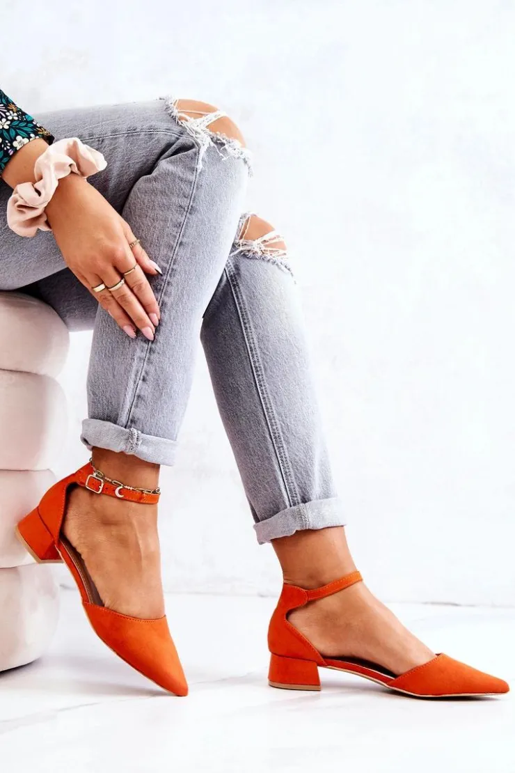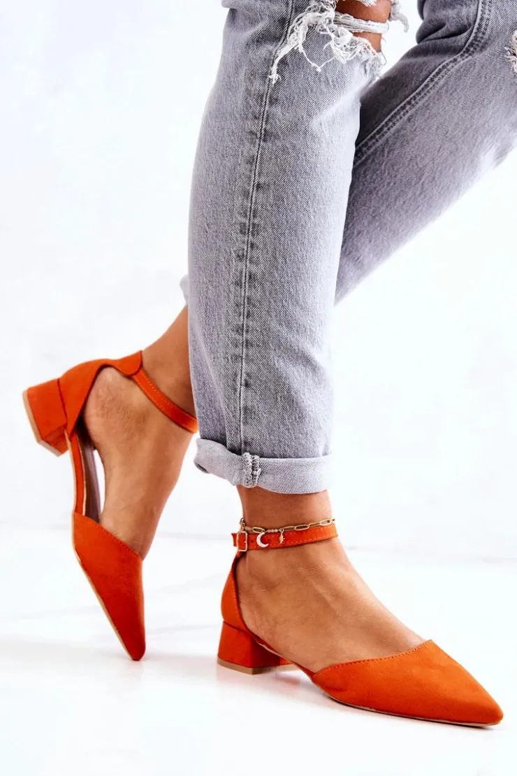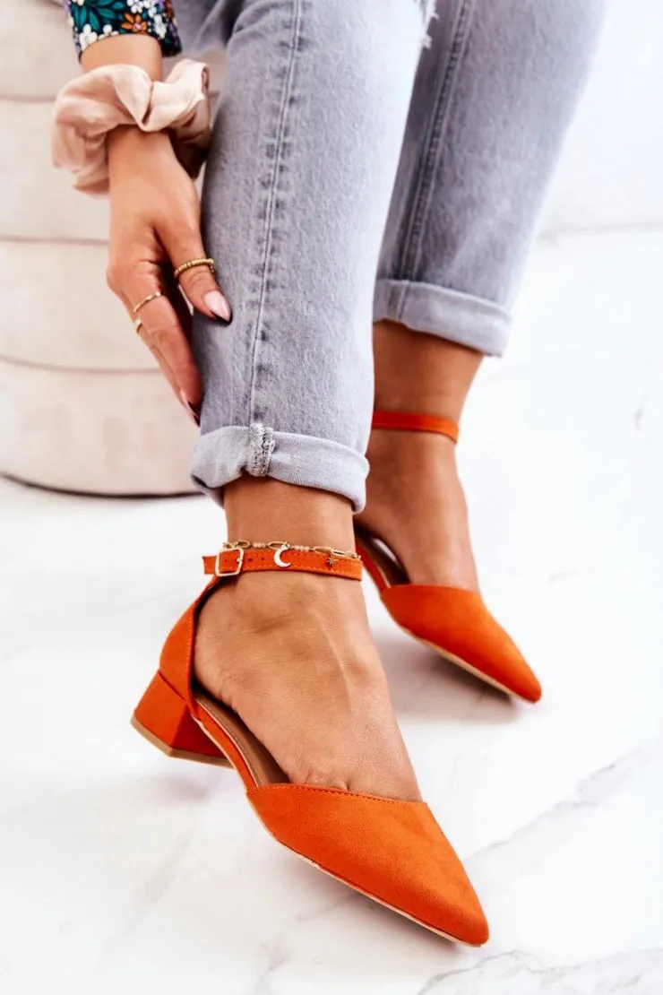 Klasyczne czółenka wykonane z eko zamszowej skóry. Posiadają nosek w szpic. Model oparty na niskim i stabilnym słupku. Wkładka z eko skóry zapewni nam komfort na każdym kroku. Buty zapinane wokół kostki na sprzączkę na regulowanym pasku. Taki model powinien znaleźć się w Twojej szafie! Przy wyborze rozmiaru prosimy kierować się tabelą rozmiarów.