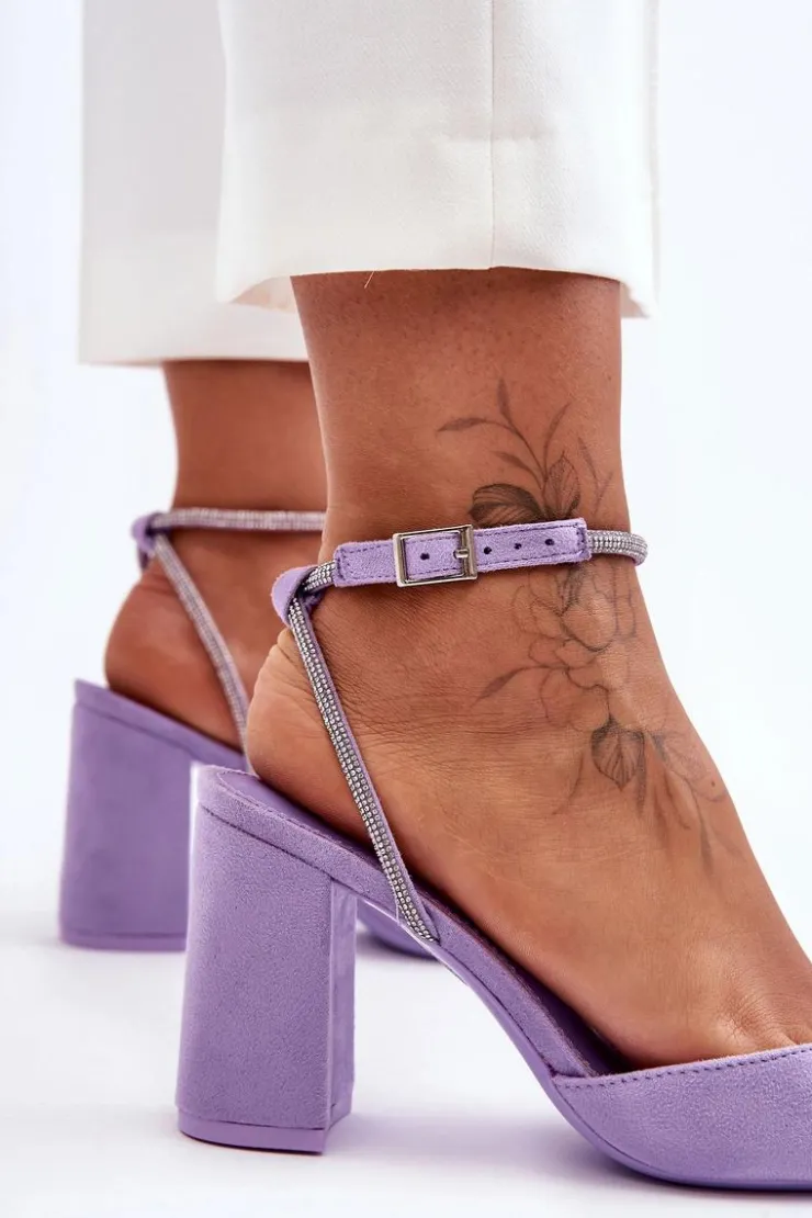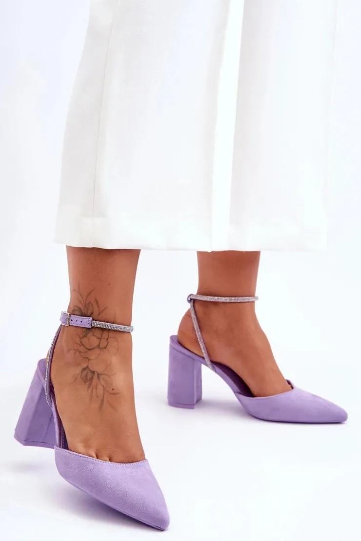 Boto Czółenka Zamszowe|Czółenka Na Słupku*Zamszowe Czółenka Z Ozdobnym Paseczkiem Fioletowe Lirosa