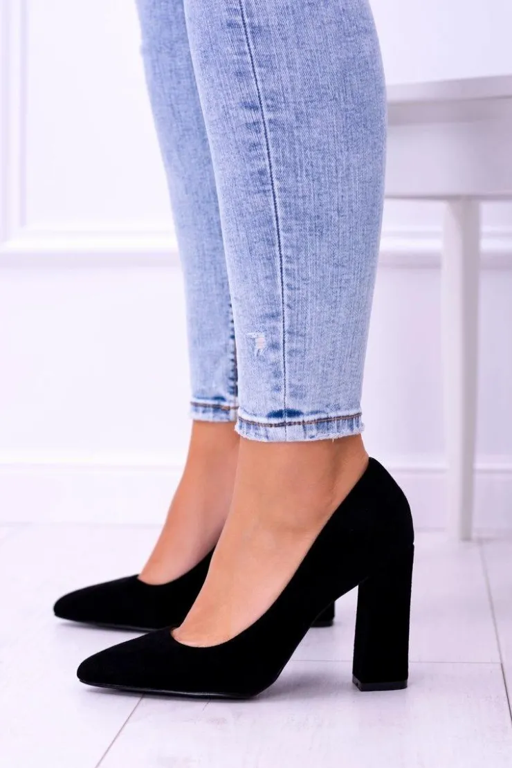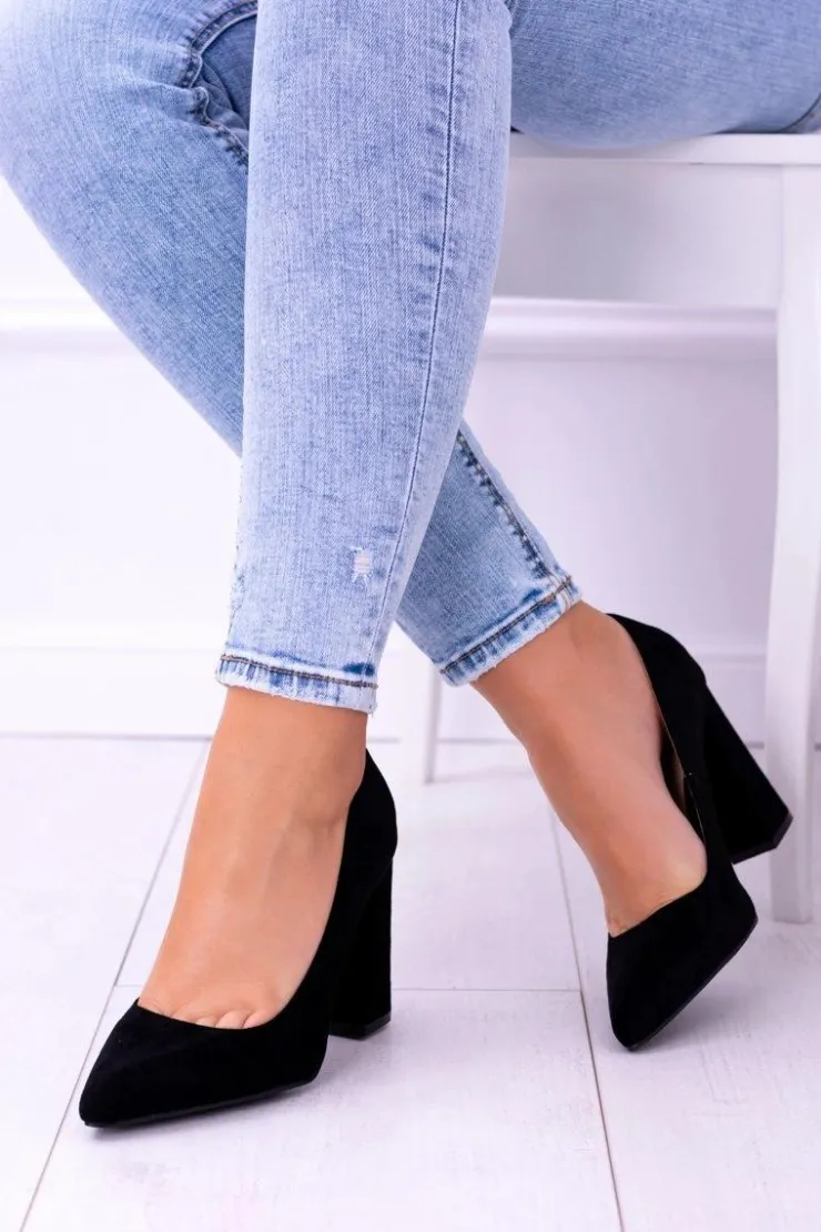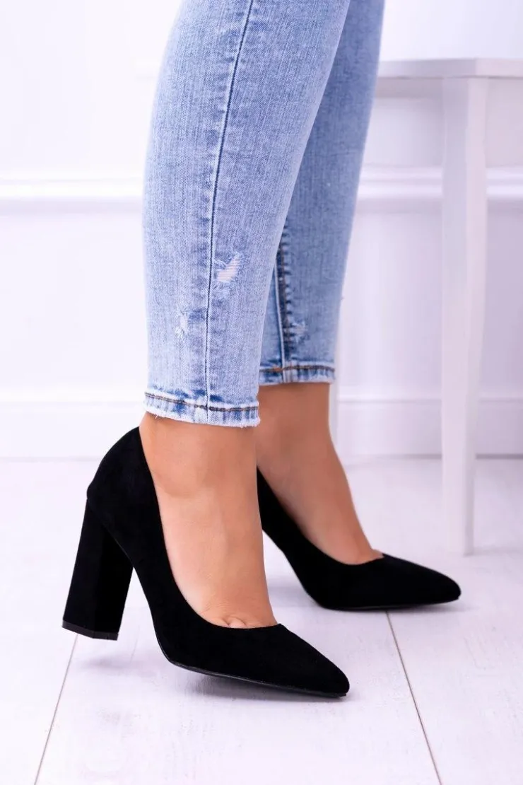 Boto Czółenka Zamszowe|Czółenka Na Słupku*Zamszowe Damskie Czarne Czółenka Na Słupku Celine