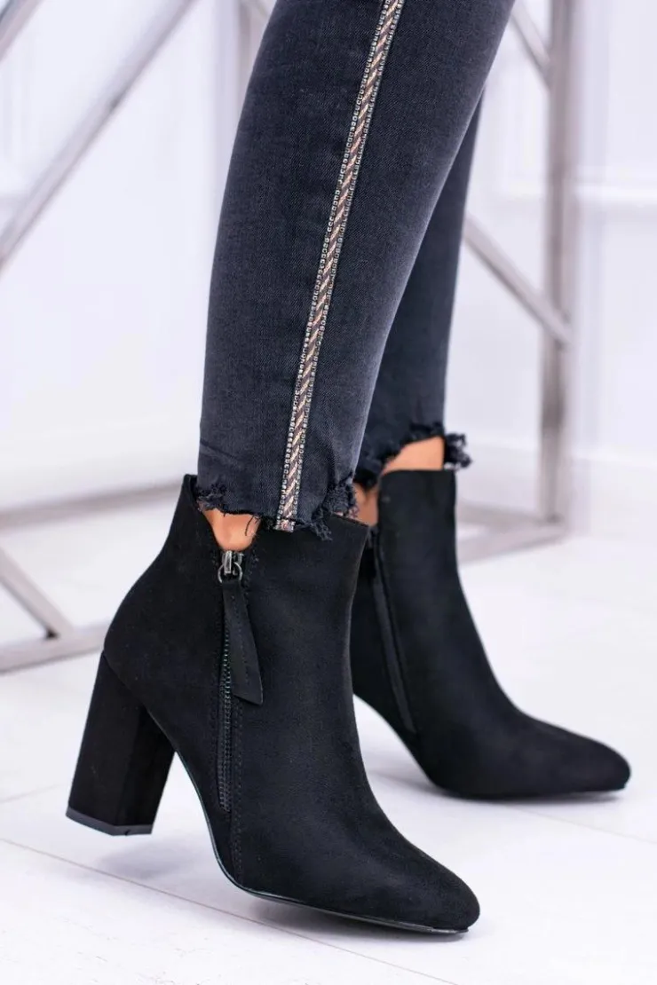 Boto Damskie Botki Czarne na Słupku Zamszowe Egida