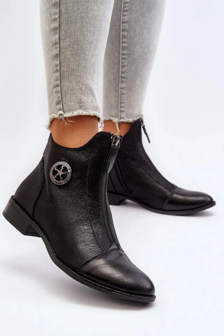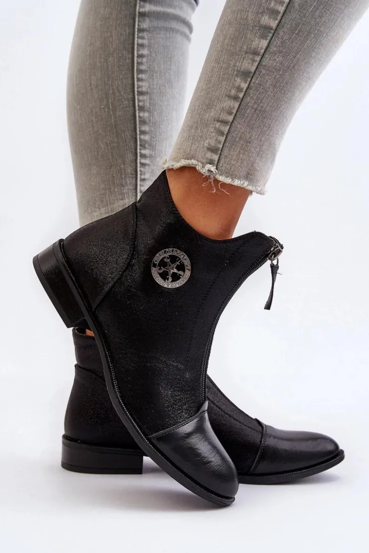 Botki marki Jezzi to idealny wybór dla tych, którzy cenią sobie zarówno styl, jak i wygodę. Wykonane z eko skóry i materiału tekstylnego, prezentują się niezwykle elegancko. Ich płaski obcas gwarantuje stabilność, a noski w kształcie migdała dodają im subtelności. Skórzana wkładka zapewnia maksymalny komfort podczas noszenia. Te botki to połączenie doskonałego designu i funkcjonalności, które sprawią, że będziesz czuć się pewnie i stylowo w każdej sytuacji. Przy wyborze rozmiaru prosimy sugerować się tabelą rozmiarów.