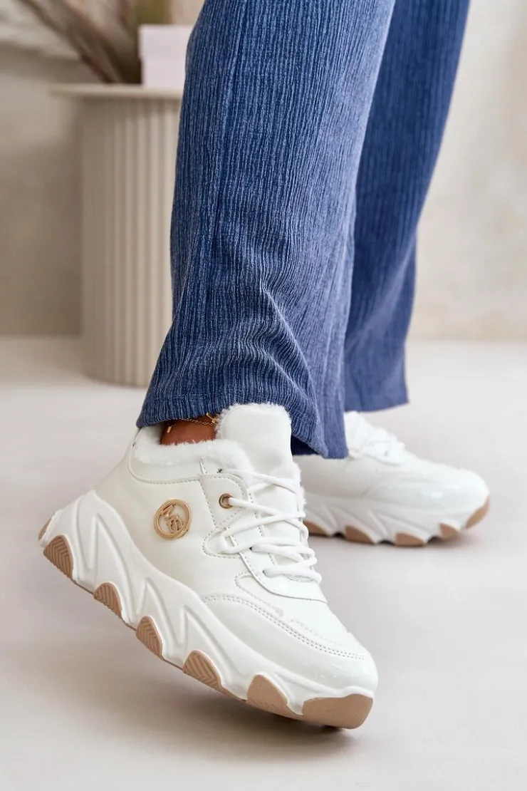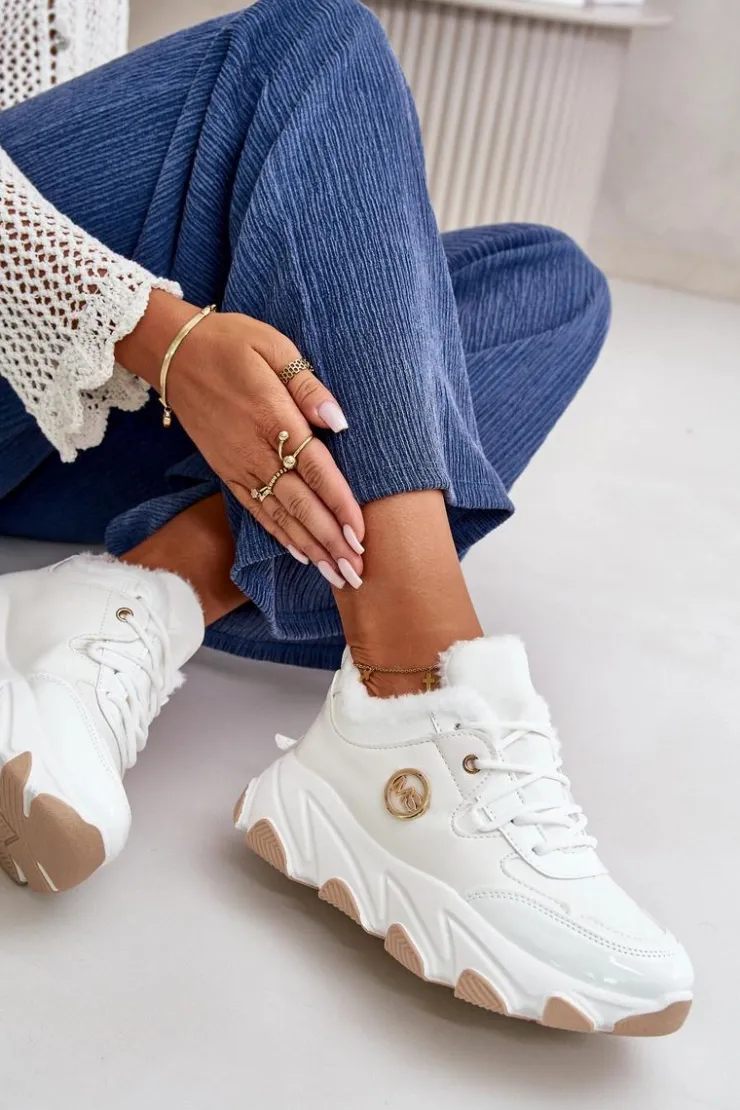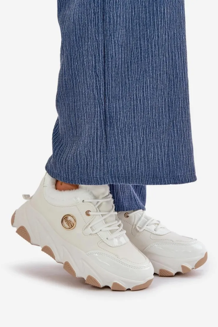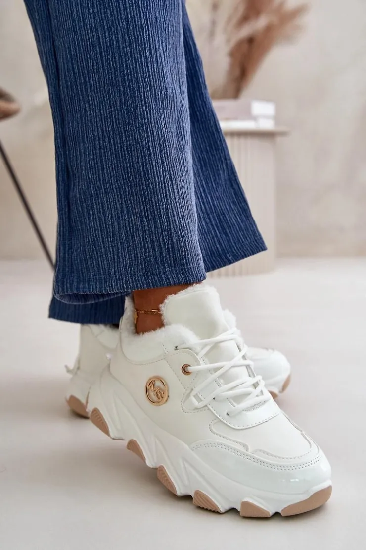Boto Damskie Buty Sportowe Sznurowane Ocieplane Na Platformie Białe Verioras Biały