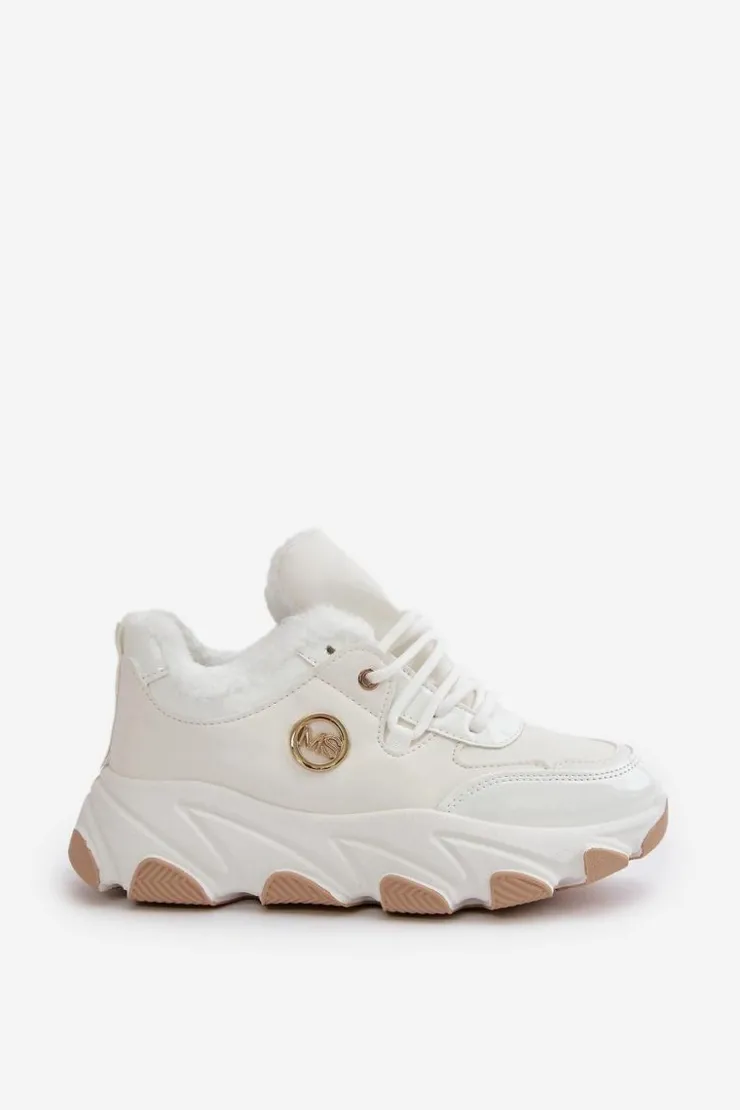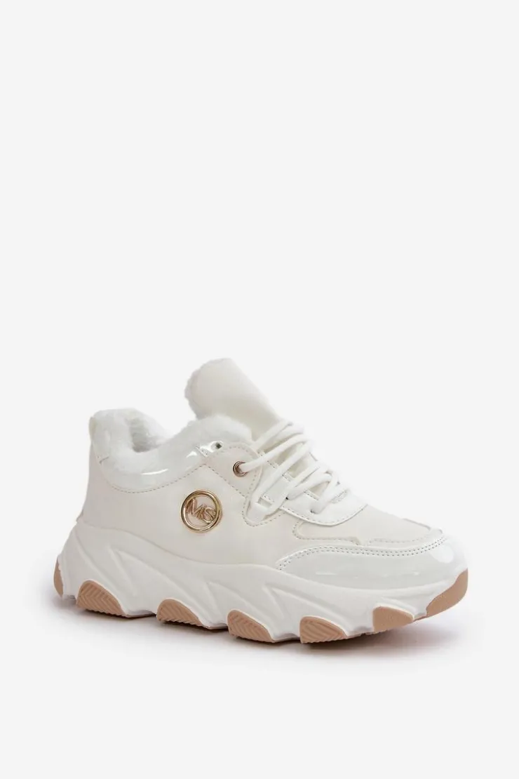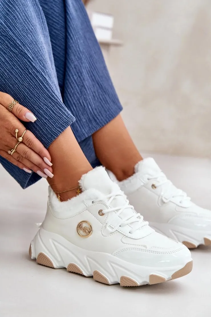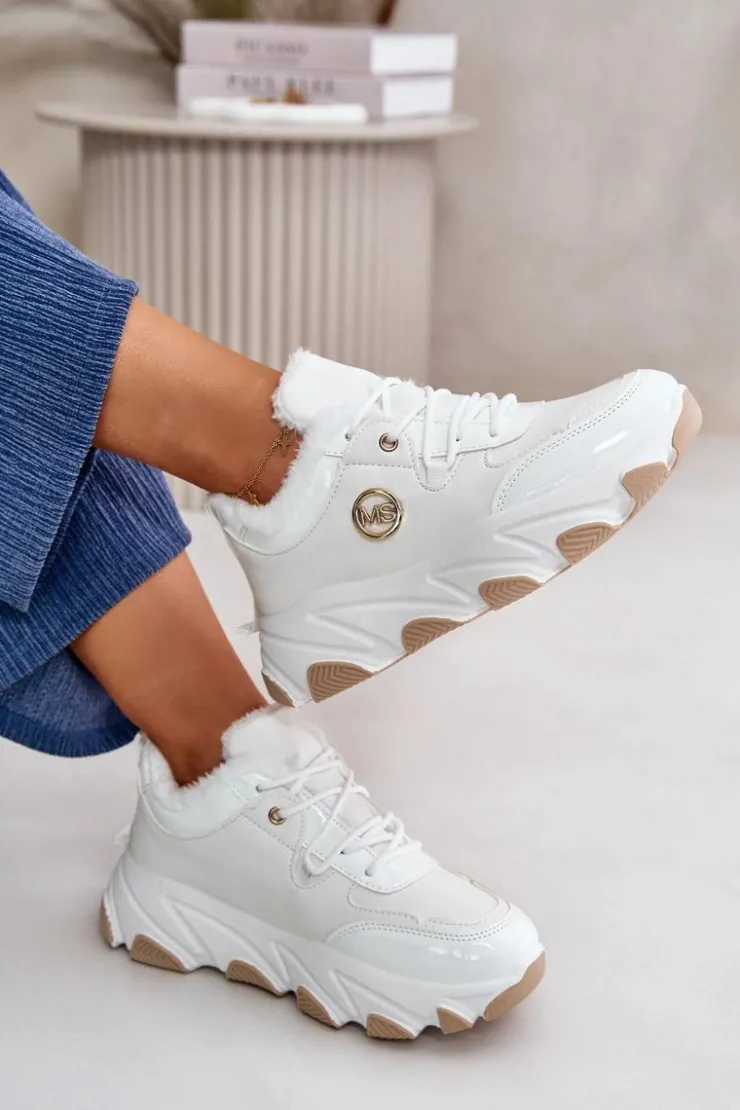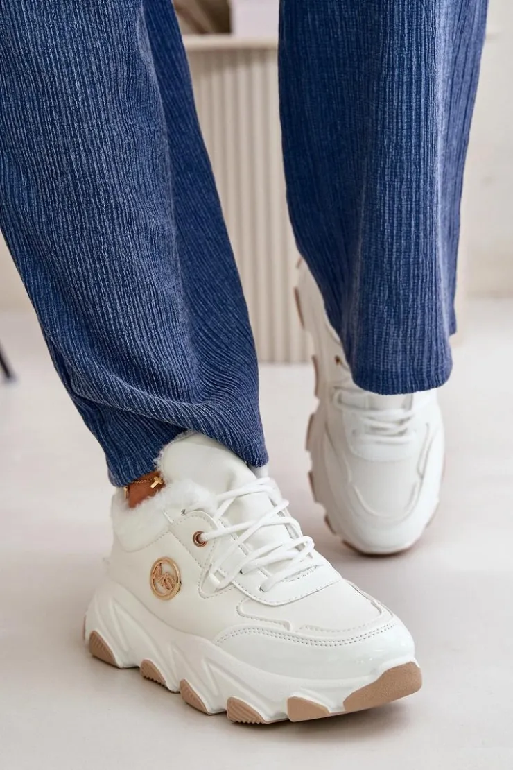 Boto Damskie Buty Sportowe Sznurowane Ocieplane Na Platformie Białe Verioras Biały