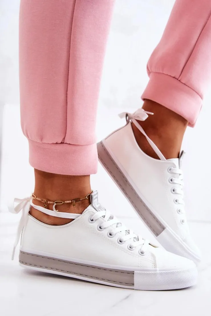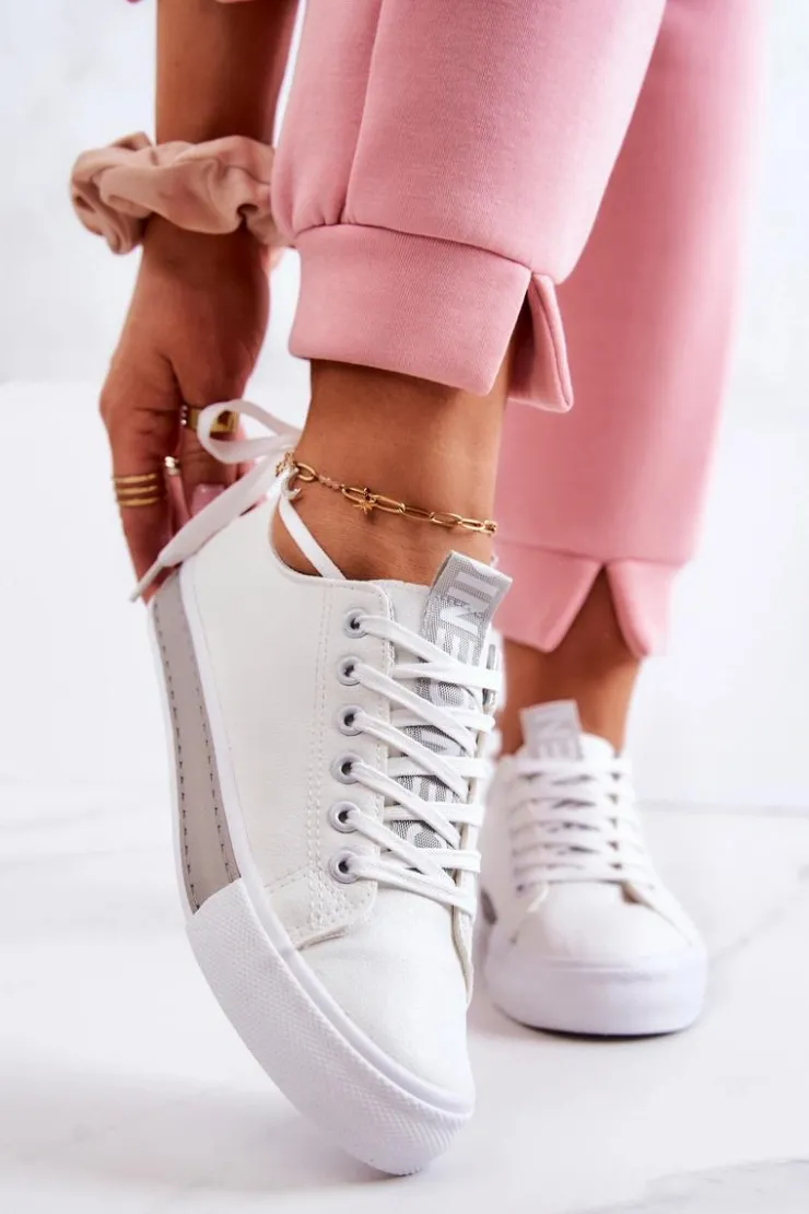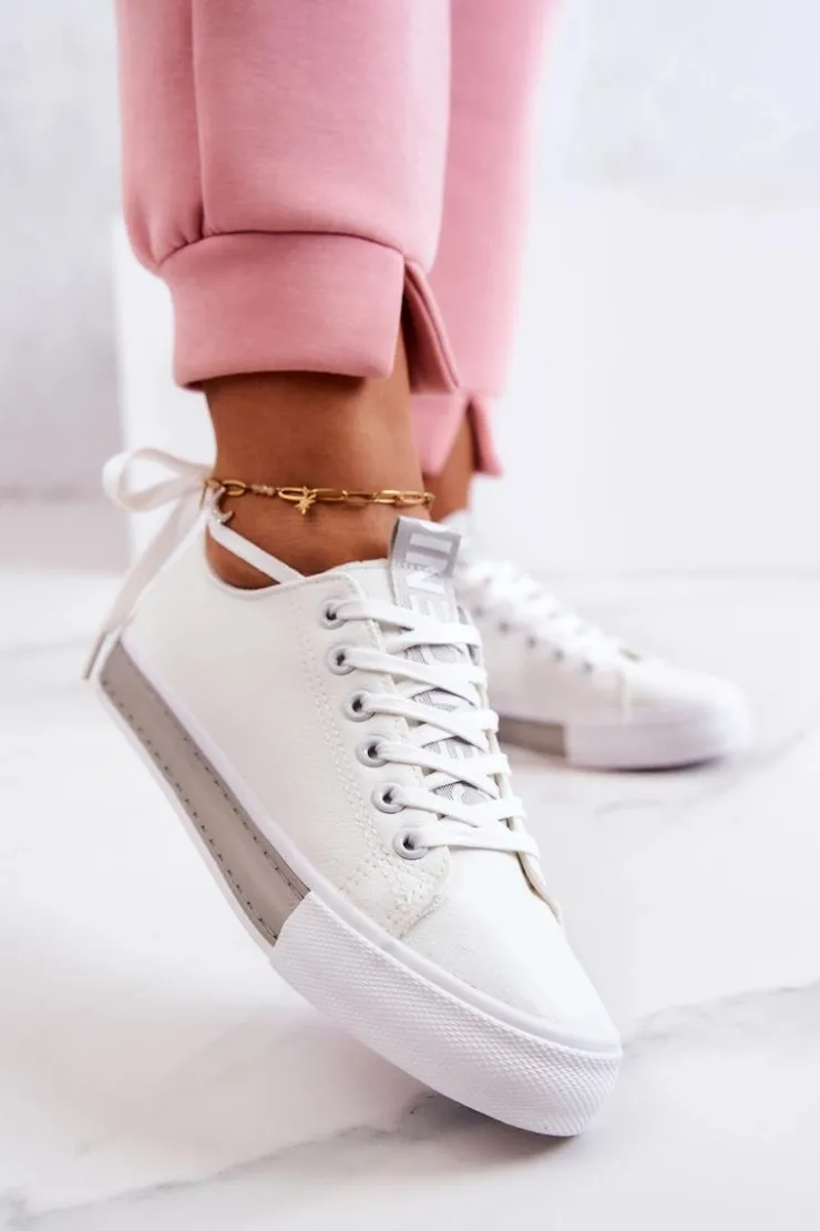 Damskie tenisówki wykonane z eko skóry. Klasyczna model pasuje do wielu stylizacji zarówno do spodni, jak i sukienek czy dłuższych spódnic. Buty dobrze dopasowują się do kształtu stopy. Posiadają miękką, materiałową wkładkę. Model klasycznie wiązany. Buty posiadają antypoślizgową podeszwę. Przy wyborze rozmiaru prosimy sugerować się tabelą rozmiarów.