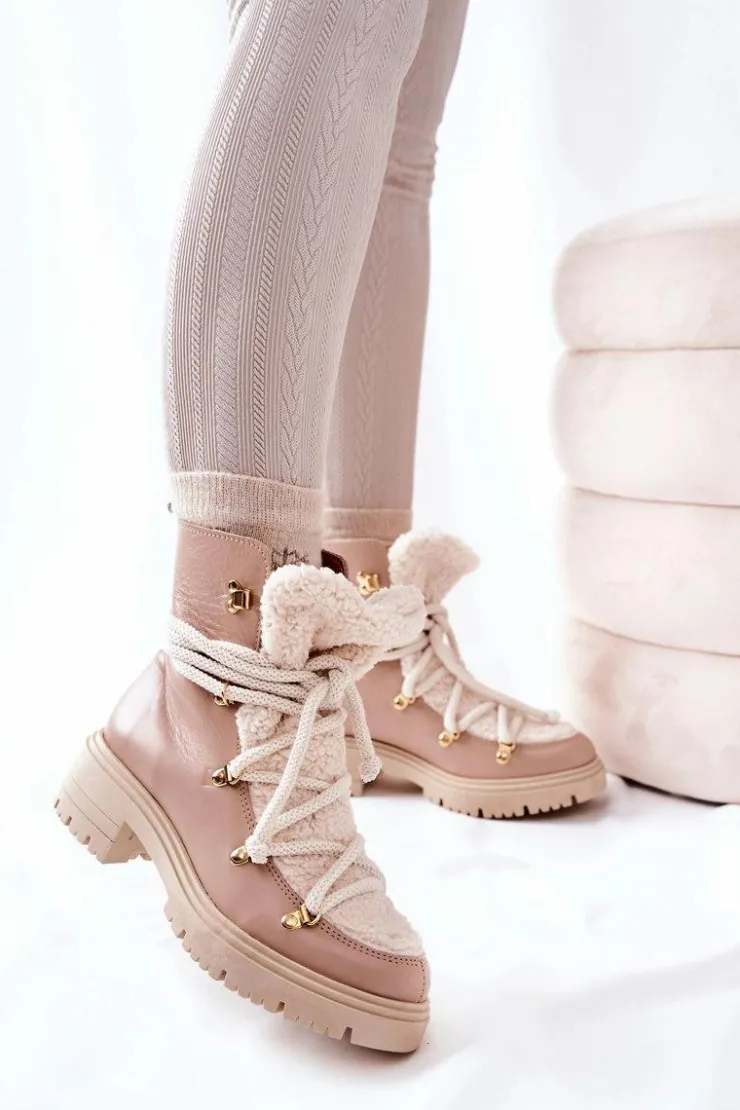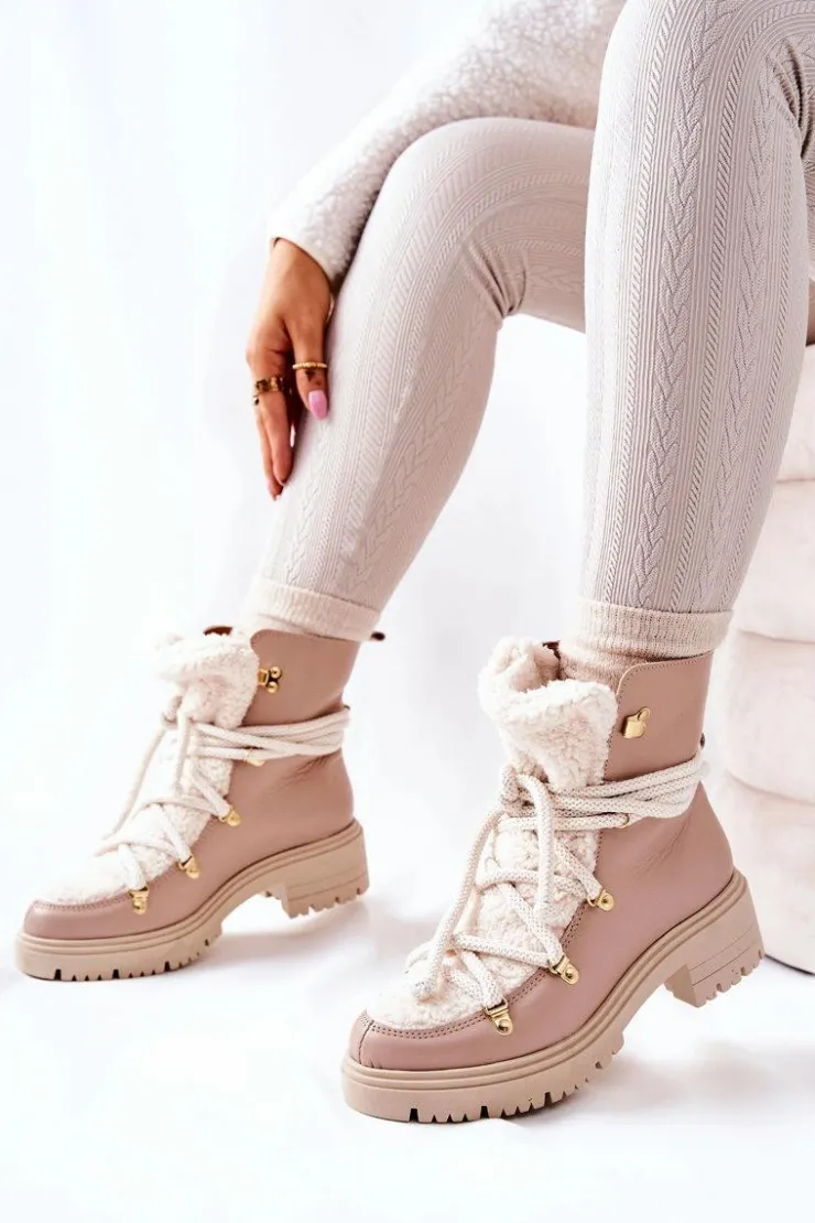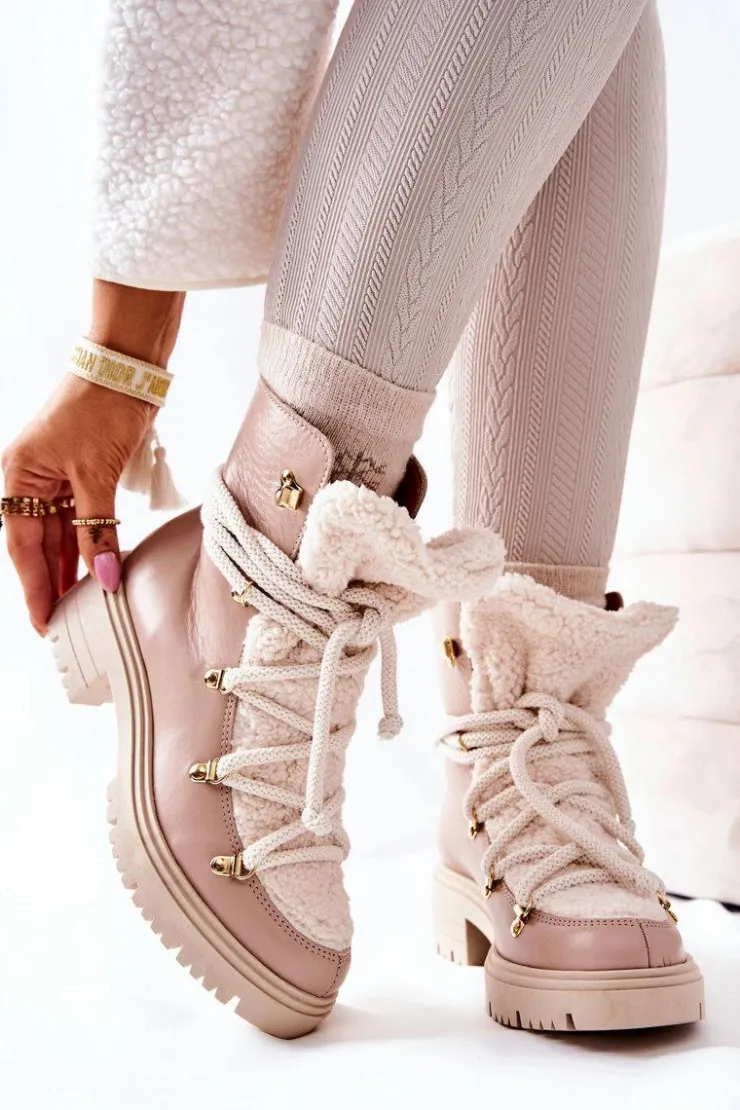 Ten model wprawia w zachwyt każdego, kto uwielbia wyróżniać się z tłumu! Ocieplany język botków, który został wykonany z przyjemnego w dotyku kożuszka sprawia, że trapery są niezwykle wyjątkowe! Zostały wykonane z naturalnej licowej skóry. Wkładka jest także skórzana. Posiadają wiązanie, które można dopasować do tęgości nogi. Buty osadzone są na płaskim obcasie i delikatnej platformie. Koniecznie musisz je mieć! Przy wyborze rozmiaru prosimy sugerować się tabelą rozmiarów.