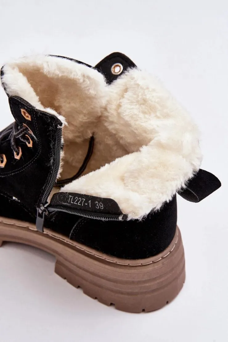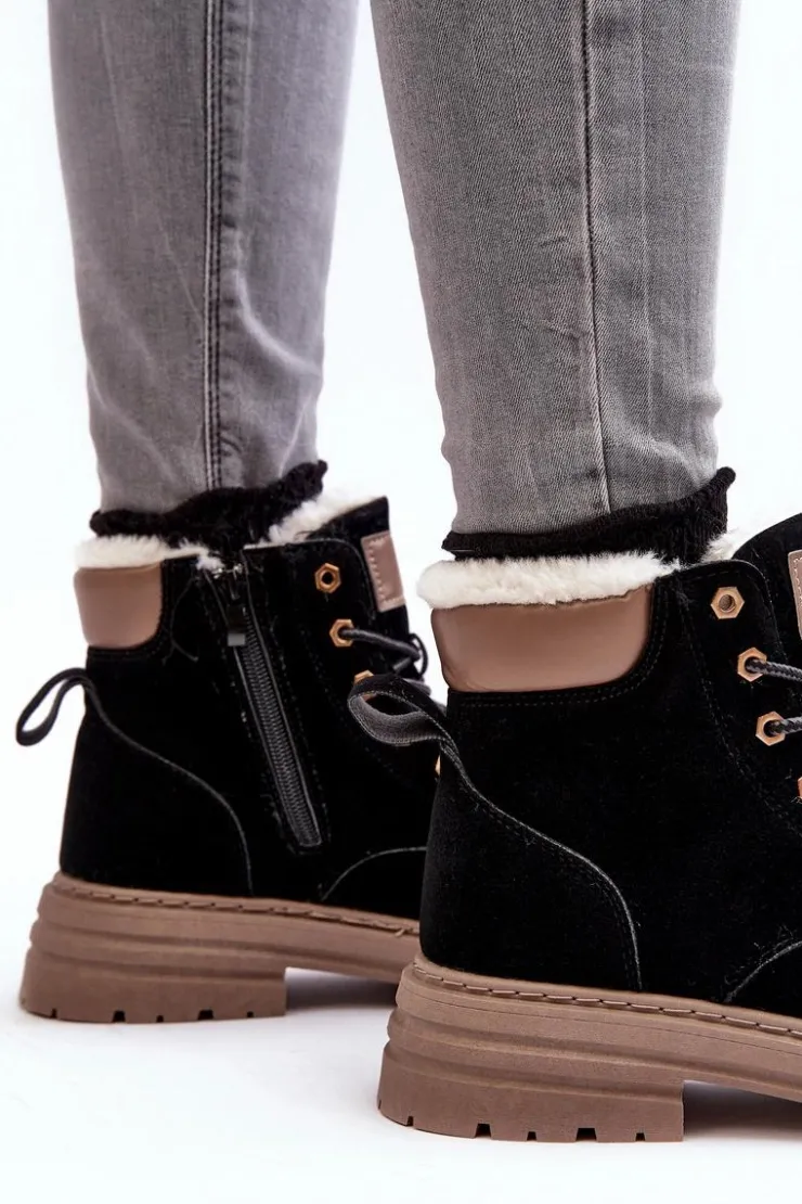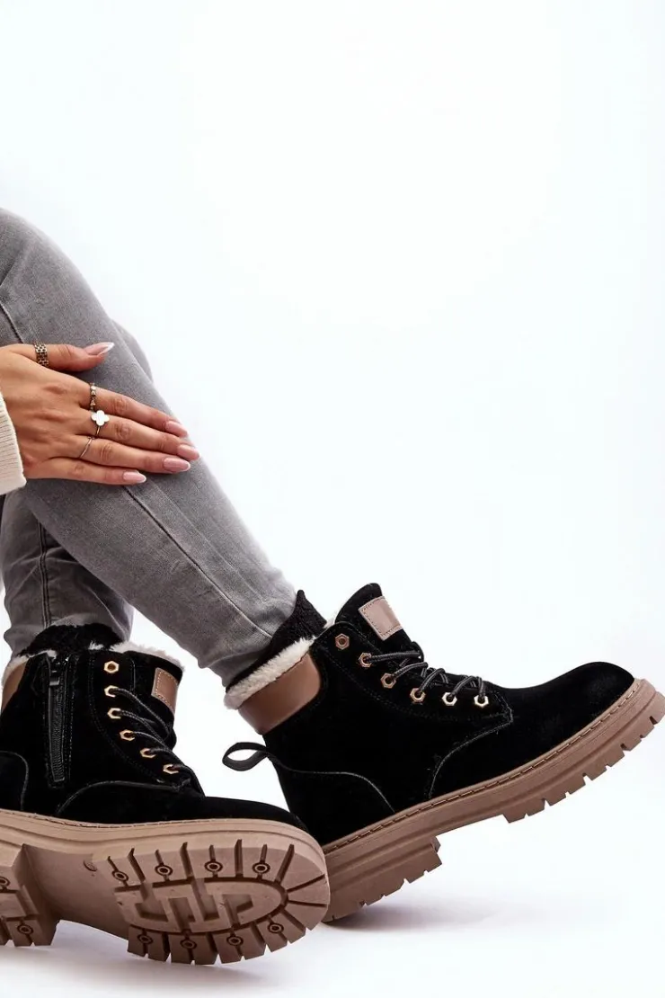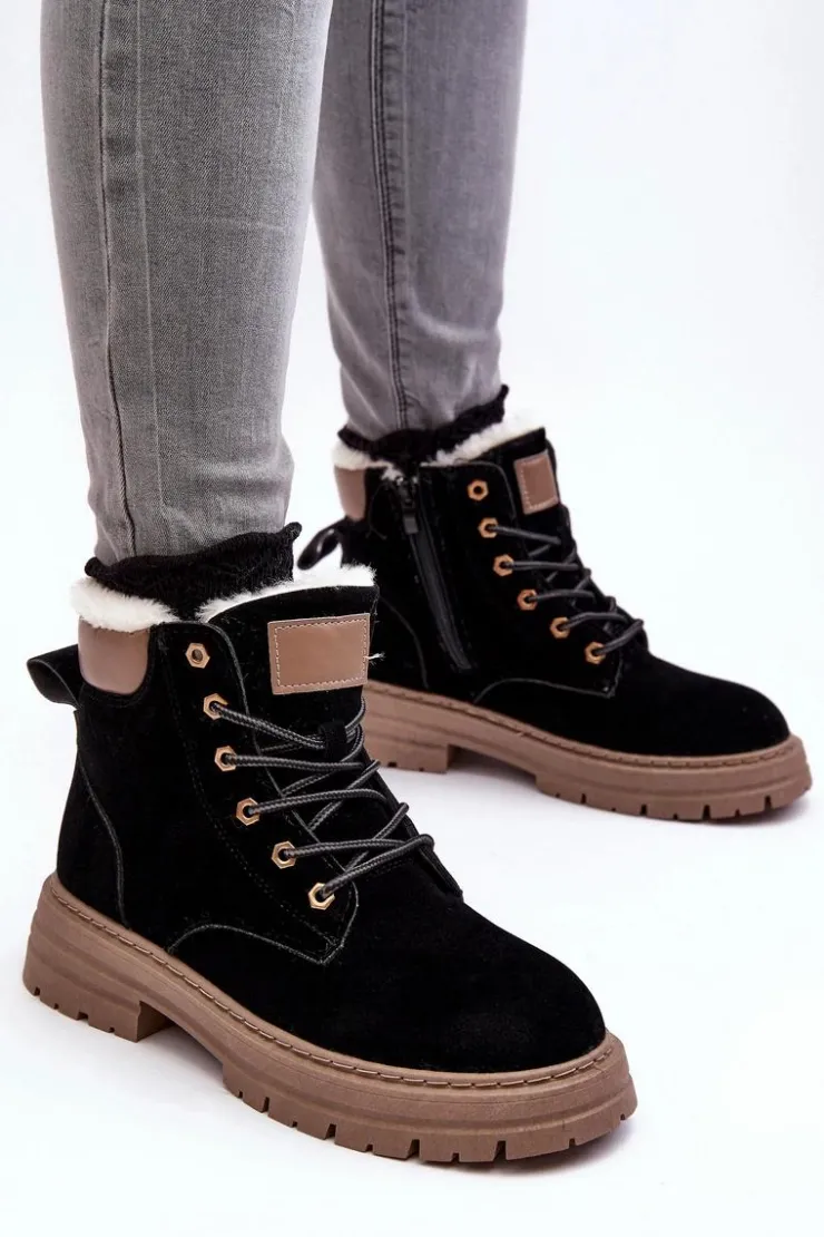 Klasyczne trapery damskie wykonane z eko skóry. Osadzone na platformie i płaskim obcasie. Zapinane na suwak z boku oraz dodatkowo posiadają sznurowanie. Środek ocieplony grubym futerkiem. Ten model traperów zachwyci każdego! Przy wyborze rozmiaru prosimy sugerować się tabelą rozmiarów.