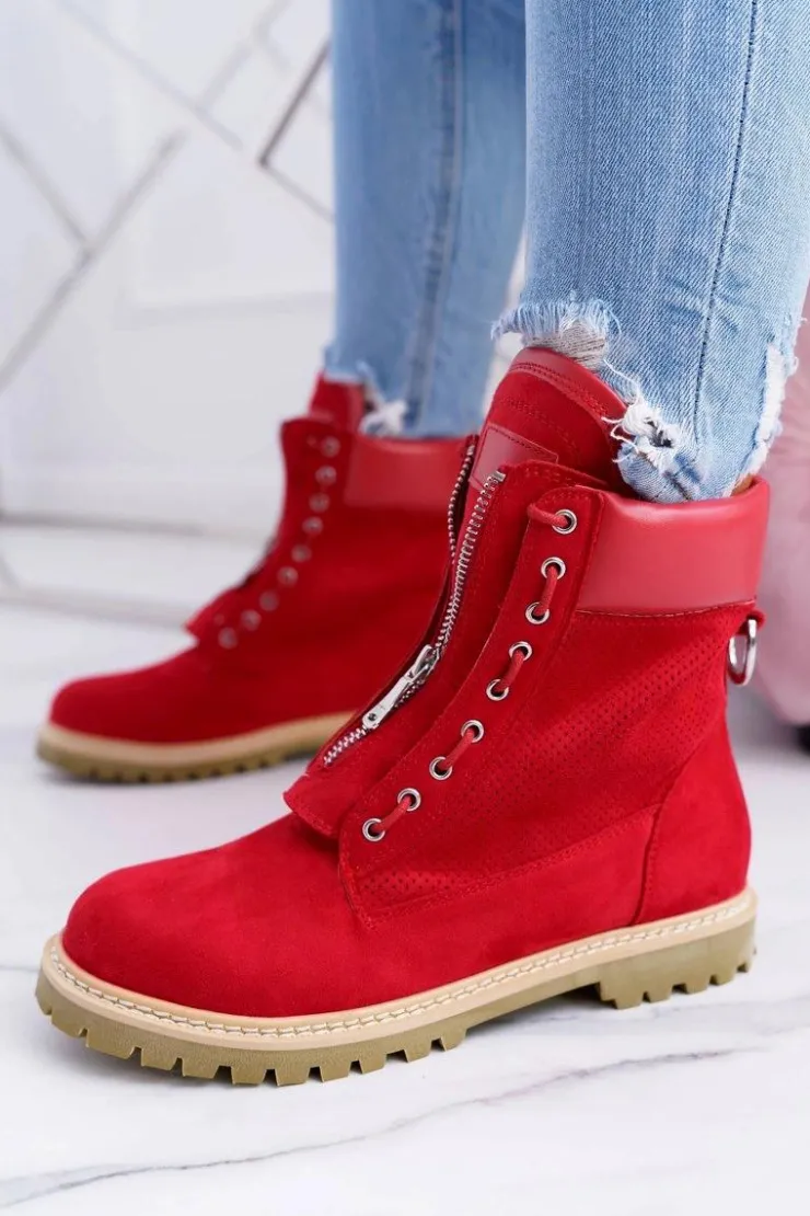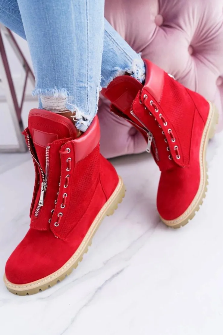 Boto Damskie Trapery|Czarne Botki*Lu Boo Damskie Czerwone Zamszowe Timberki Trapery Suwaki Nancy