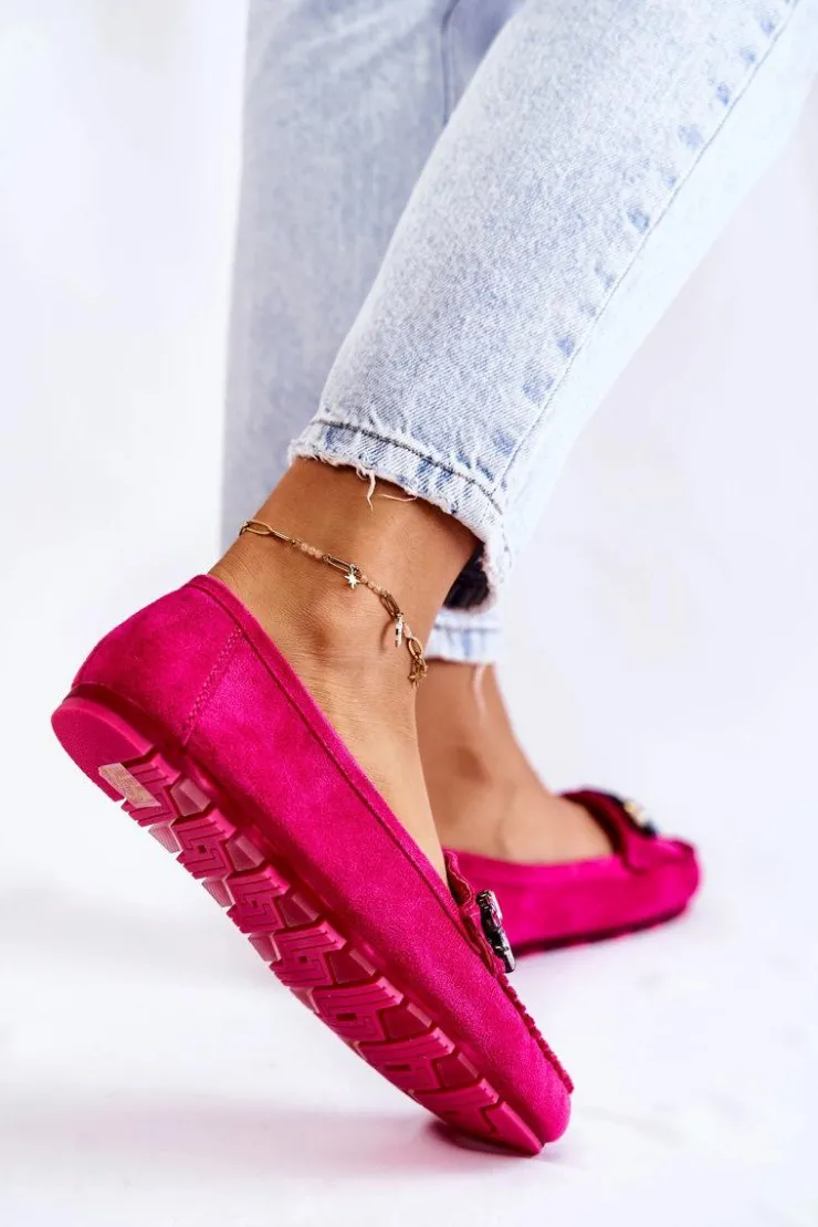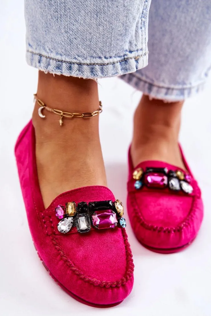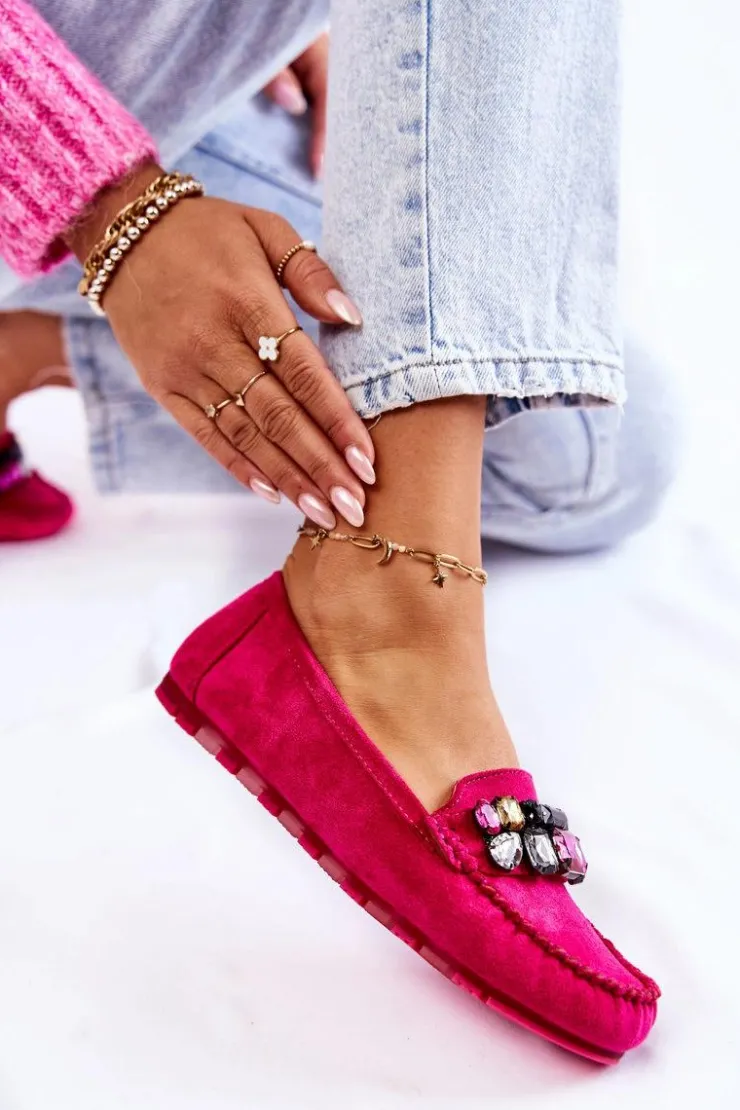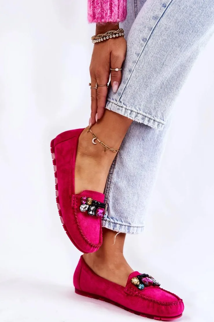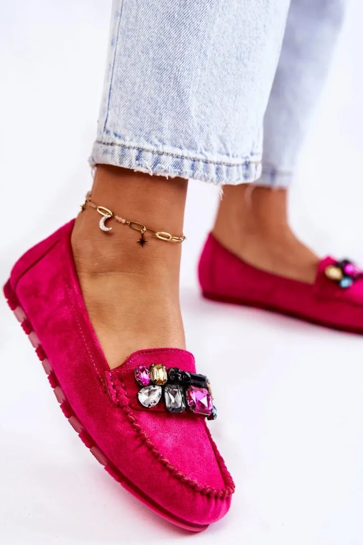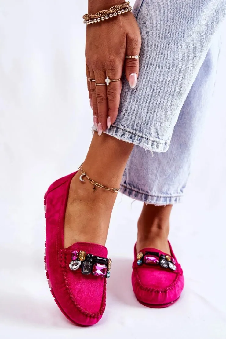 Damskie mokasyny zostały wykonane z miłego w dotyku eko zamszu. Na przodzie znajdują się ozdobne kamienie. Mokasyny zostały osadzone na delikatnej platformie, z antypoślizgową podeszwą. Zapiętek jest delikatnie usztywniany. Miękka wkładka jest dodatkowo perforowana i wykonana z naturalnej skóry. Świetny model do wielu stylizacji! Przy wyborze rozmiaru prosimy sugerować się tabelą rozmiarów.